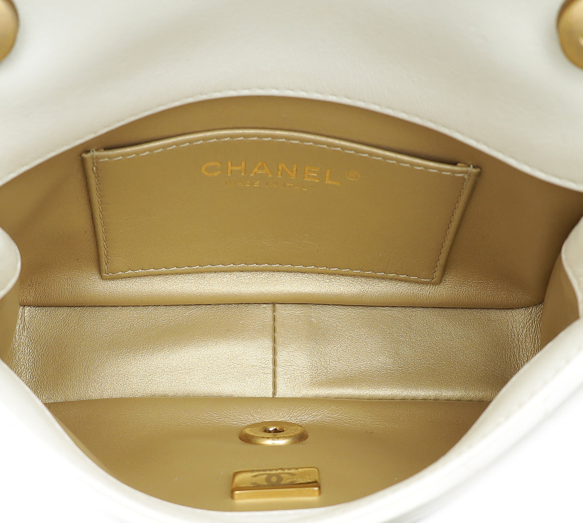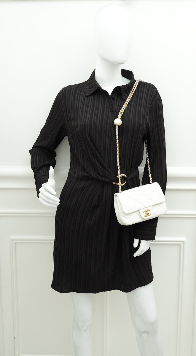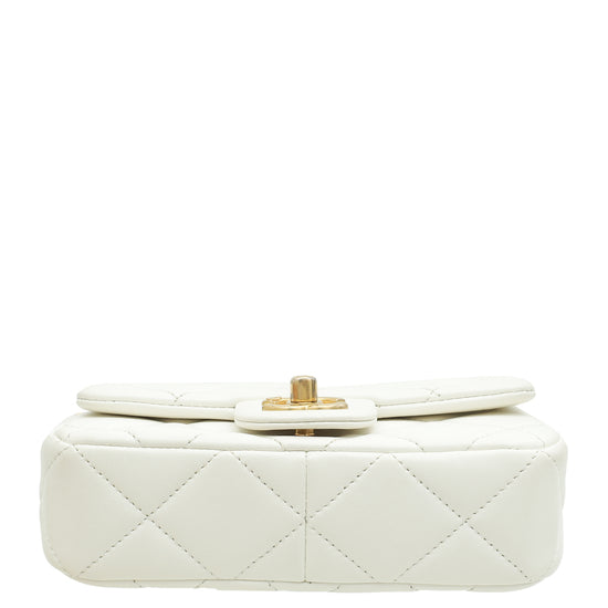 Chanel White CC Double Pearl Mini Flap Bag