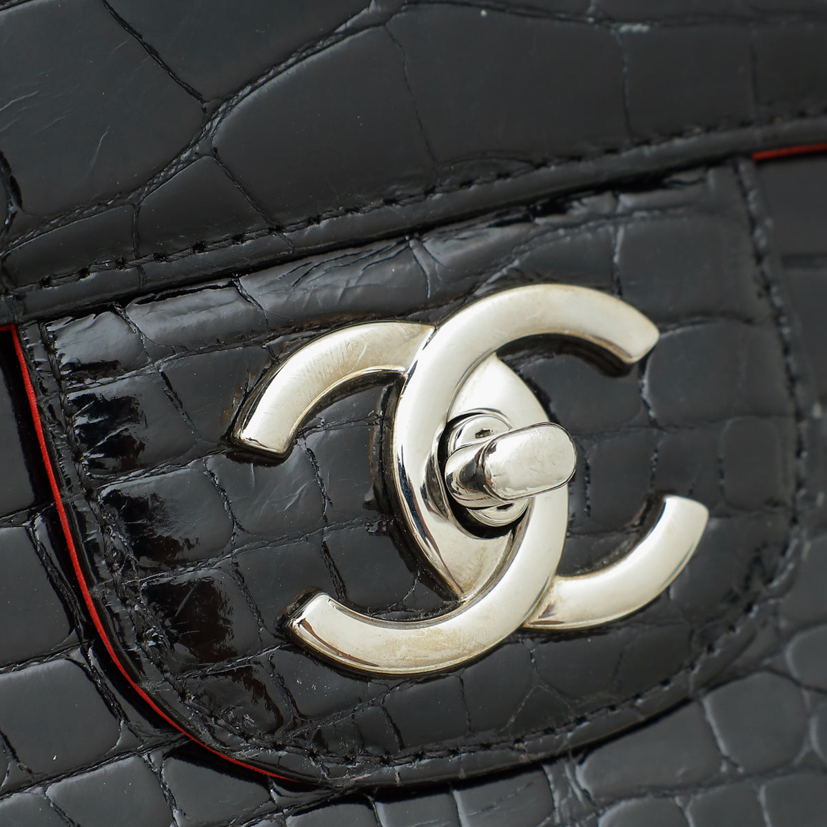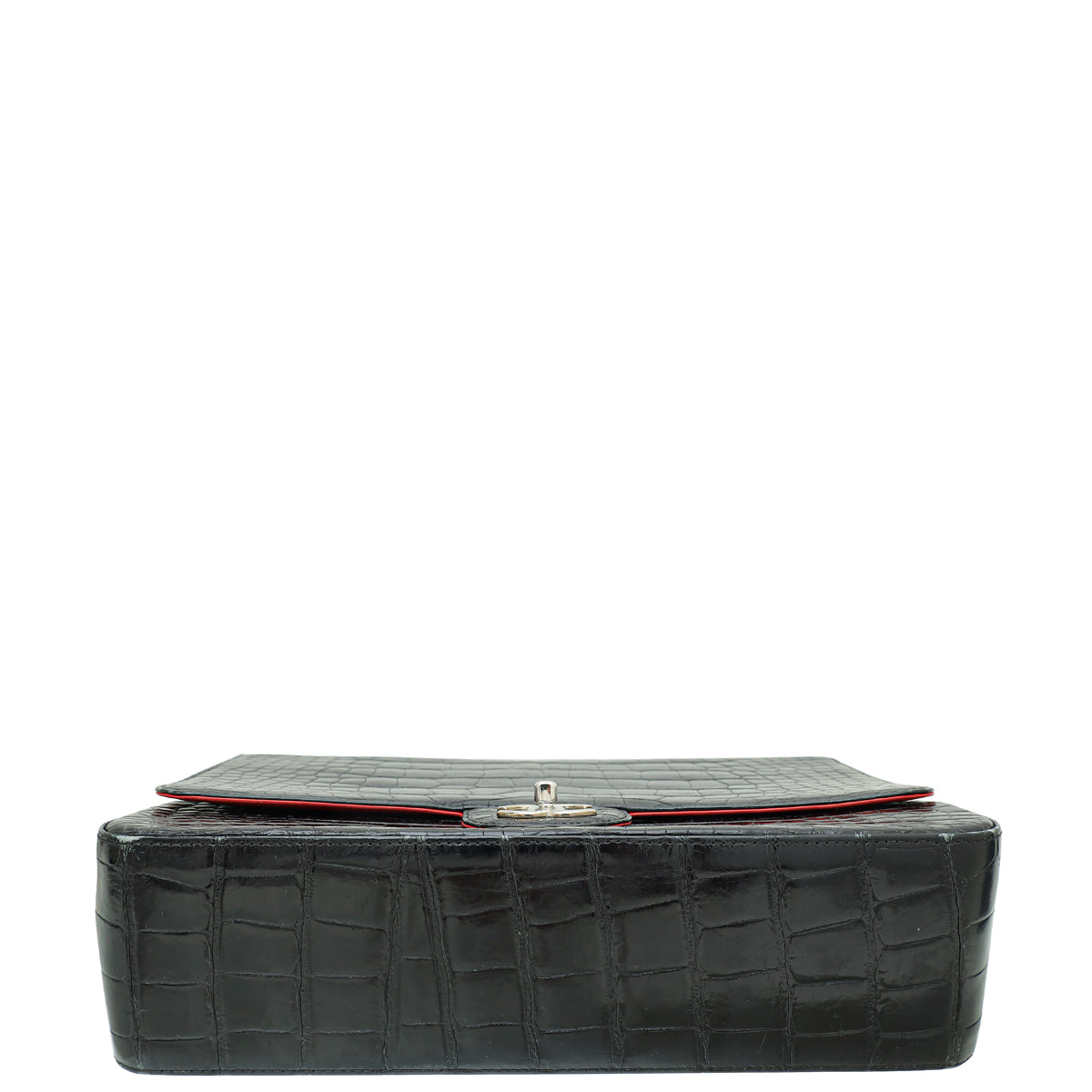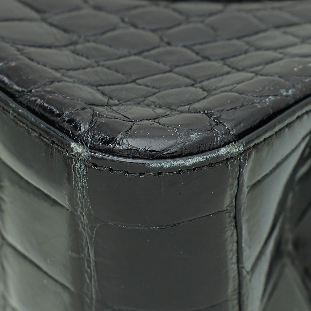 Chanel Black Shiny Alligator Classic Double Flap Maxi Bag