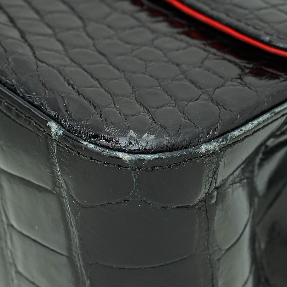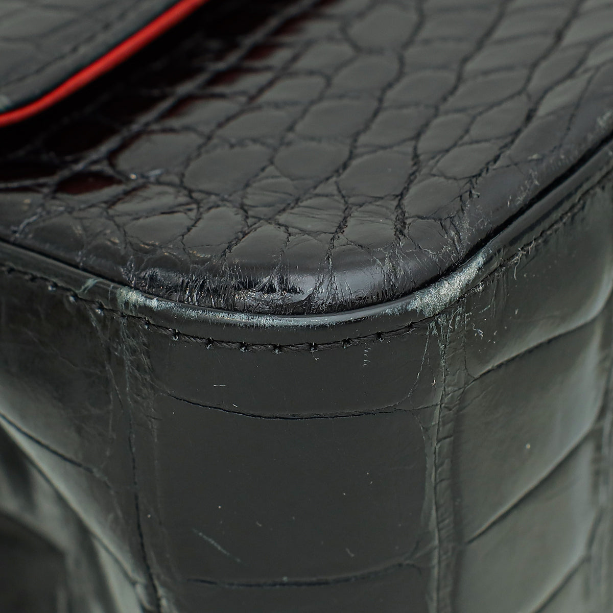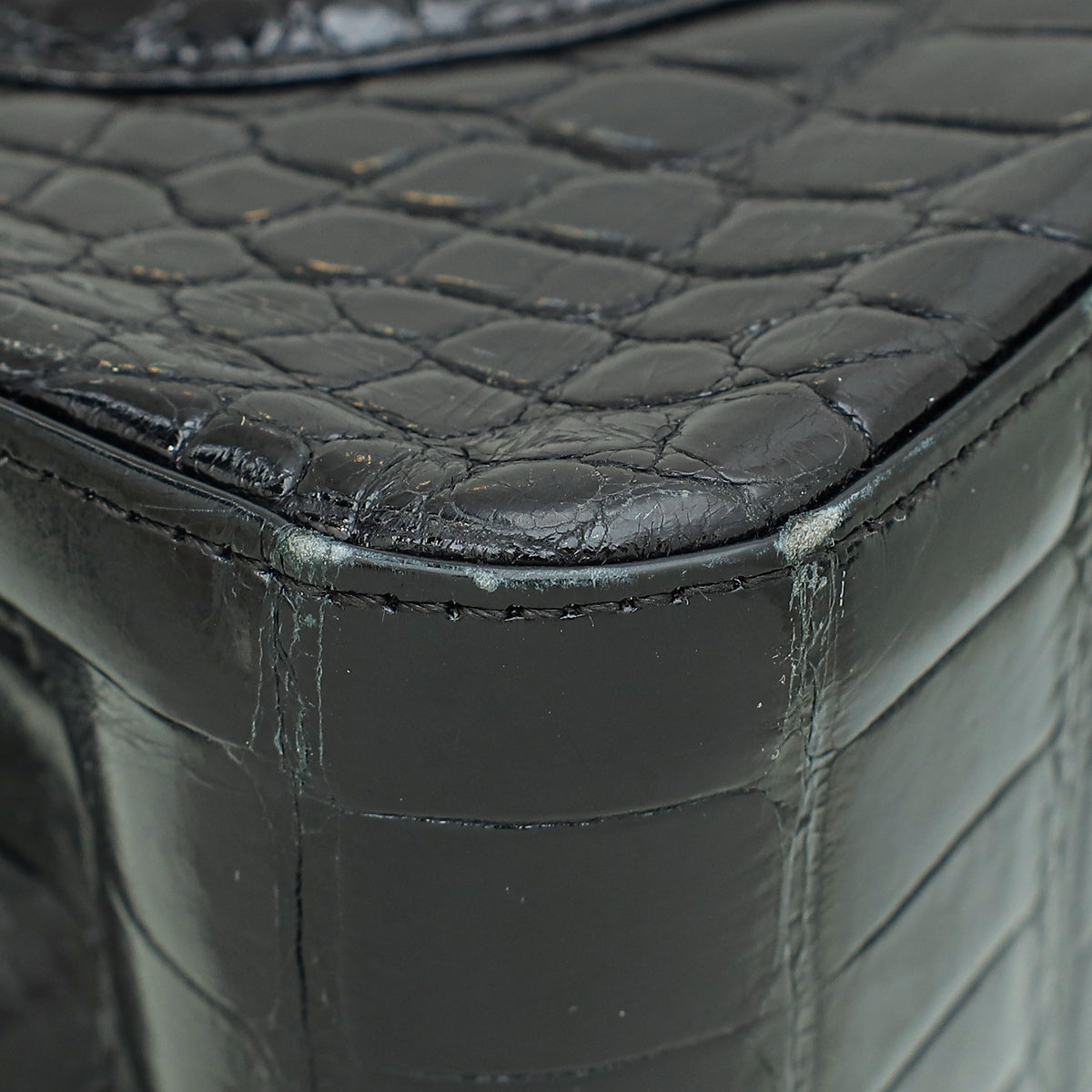 Chanel Black Shiny Alligator Classic Double Flap Maxi Bag