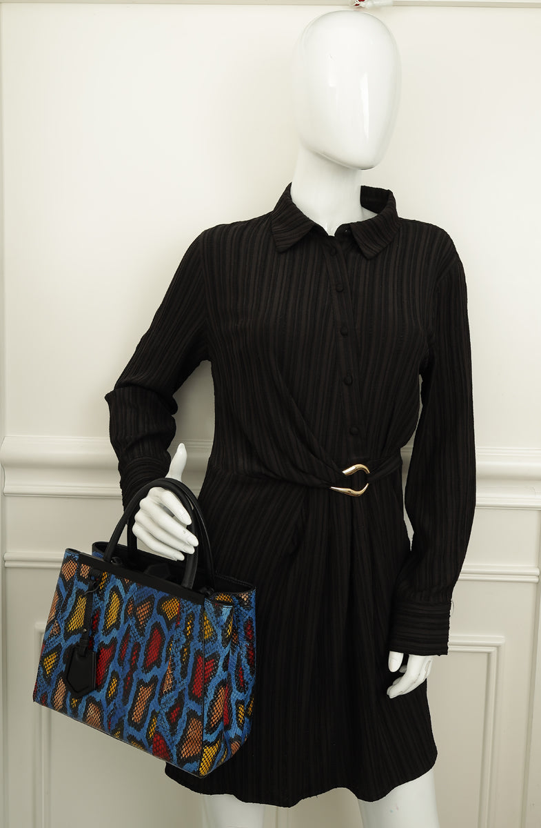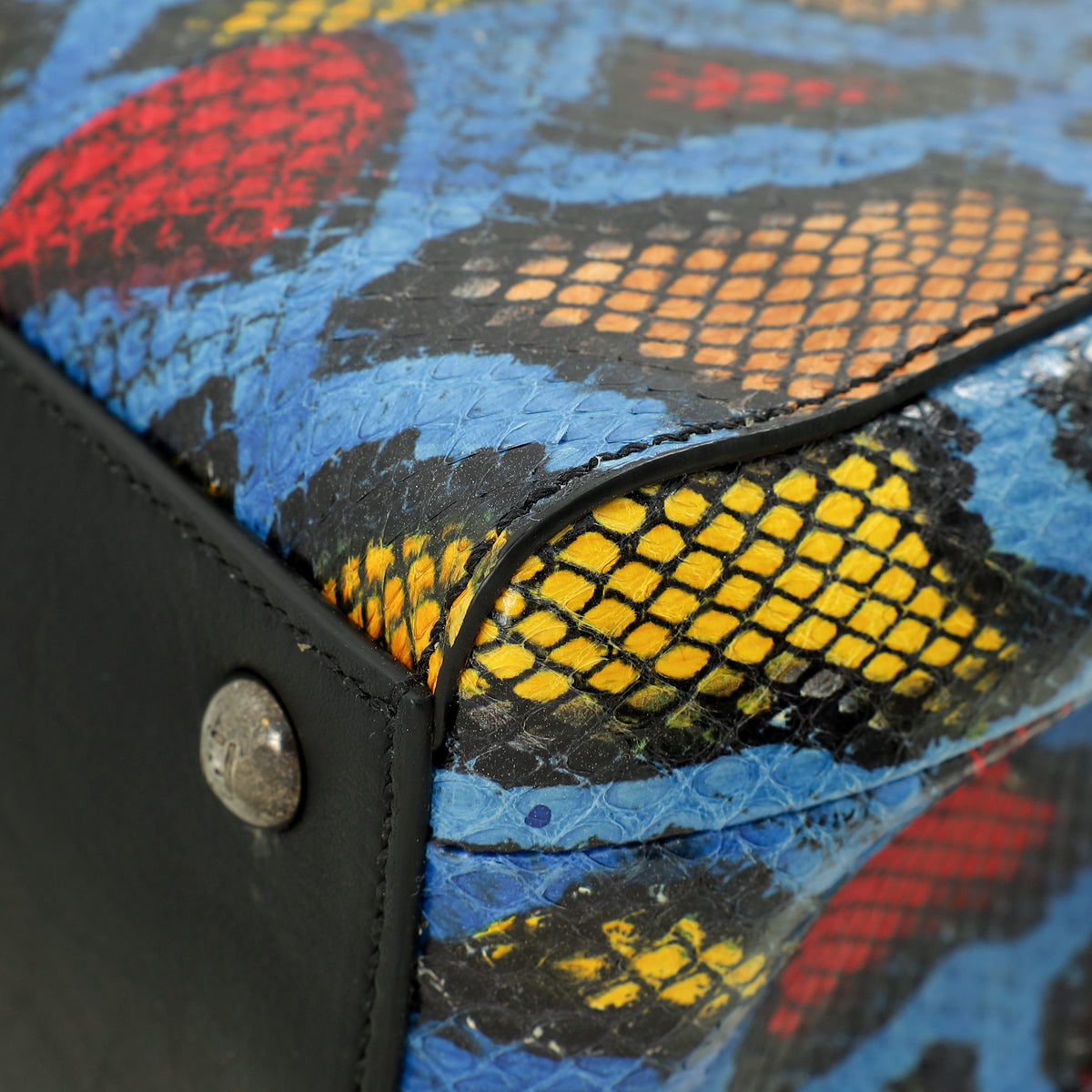 - Material: Blue/Red/Yellow/Orange Python Leather with Black Calfskin Leather Trim
