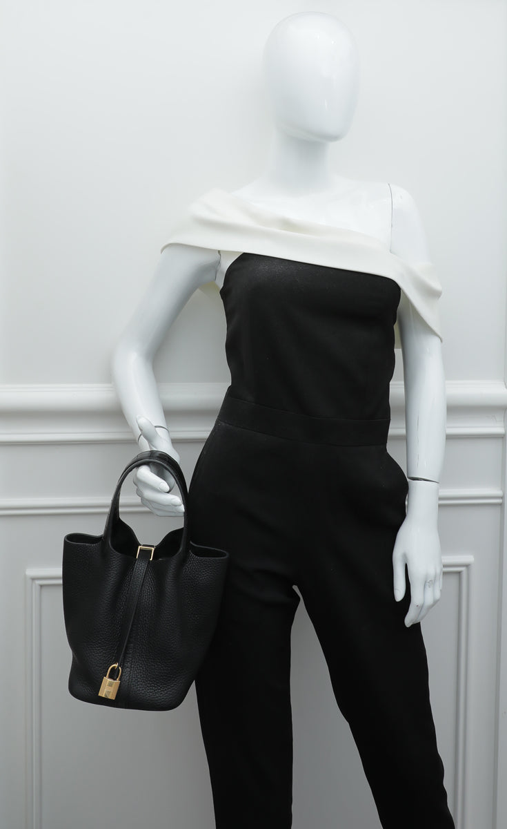 Hermes Noir Alligator Mat Handle Picotin Lock 18 Bag