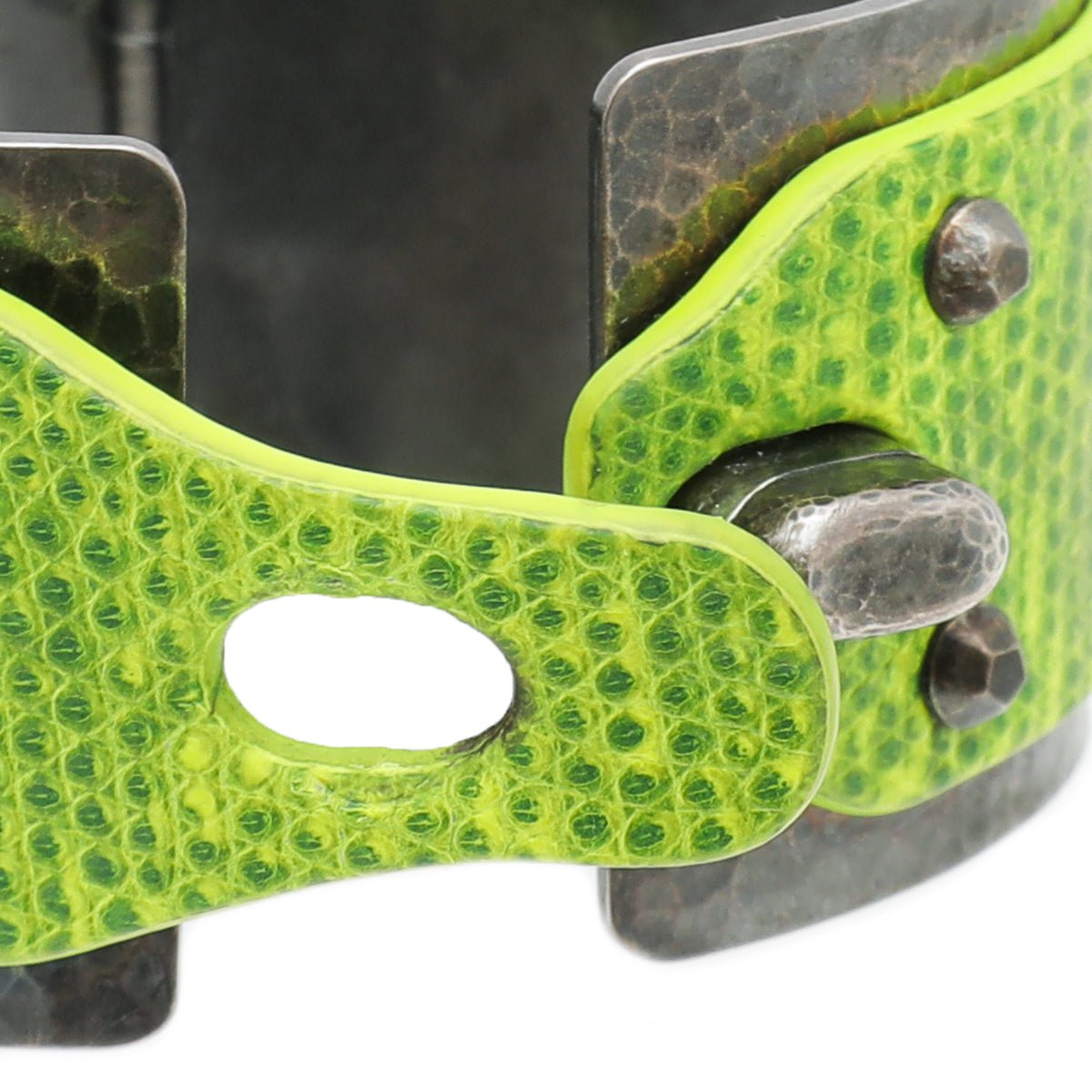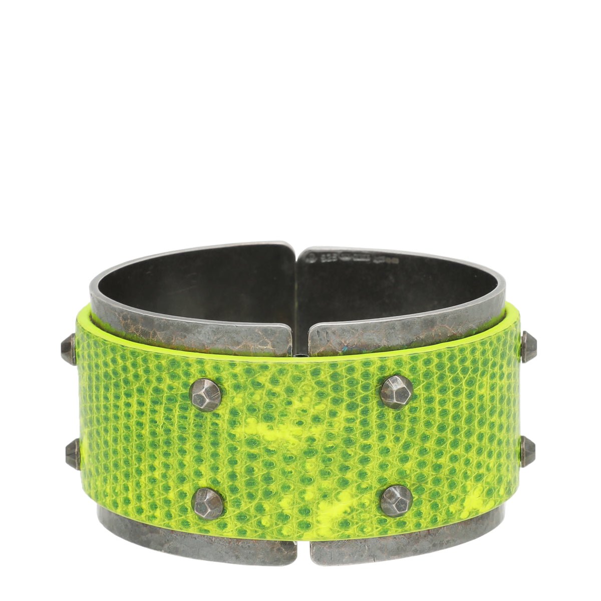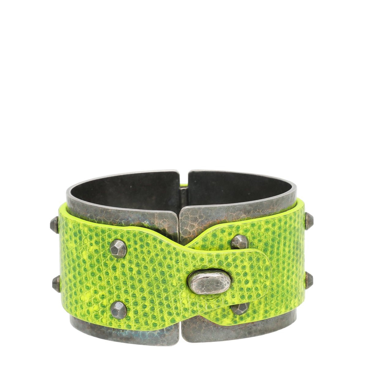 Bottega Veneta Neon Green Studded Panel Wide Cuff Bracelet