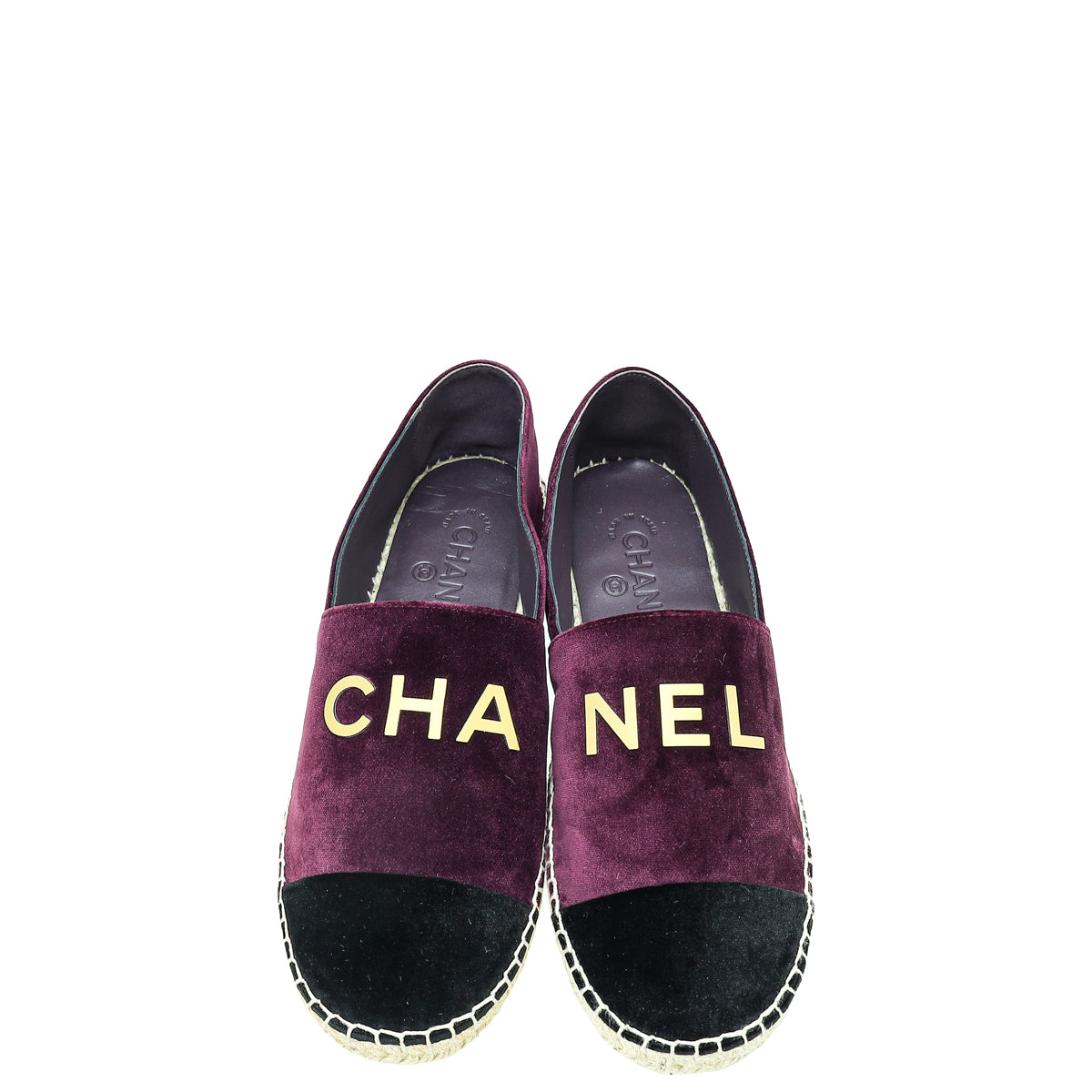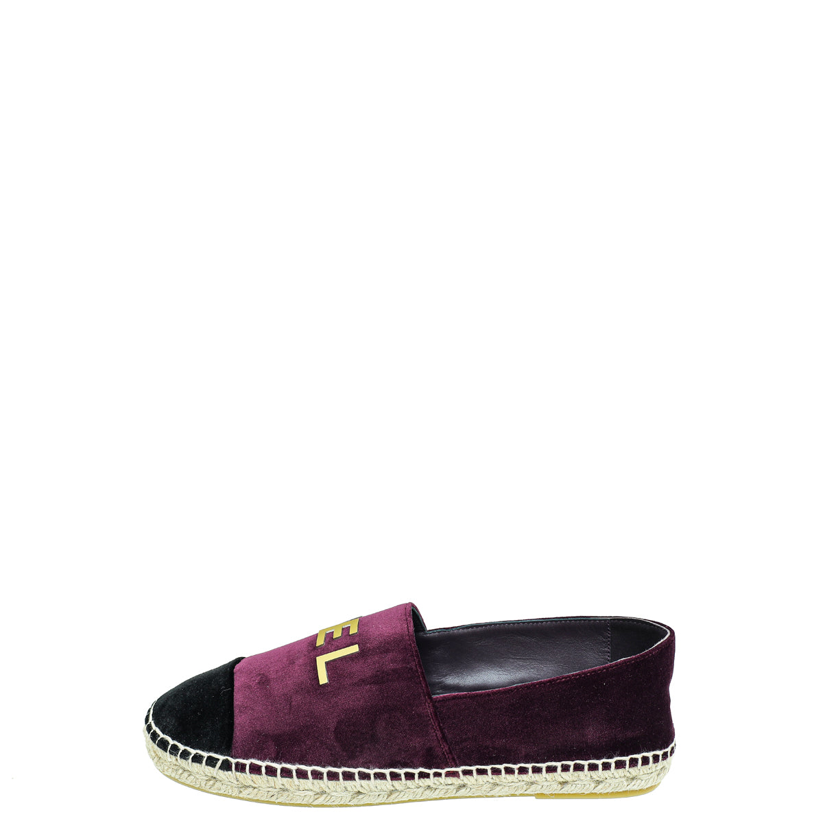 Chanel Bicolor Velvet Logo Cap Toe Espadrille 39