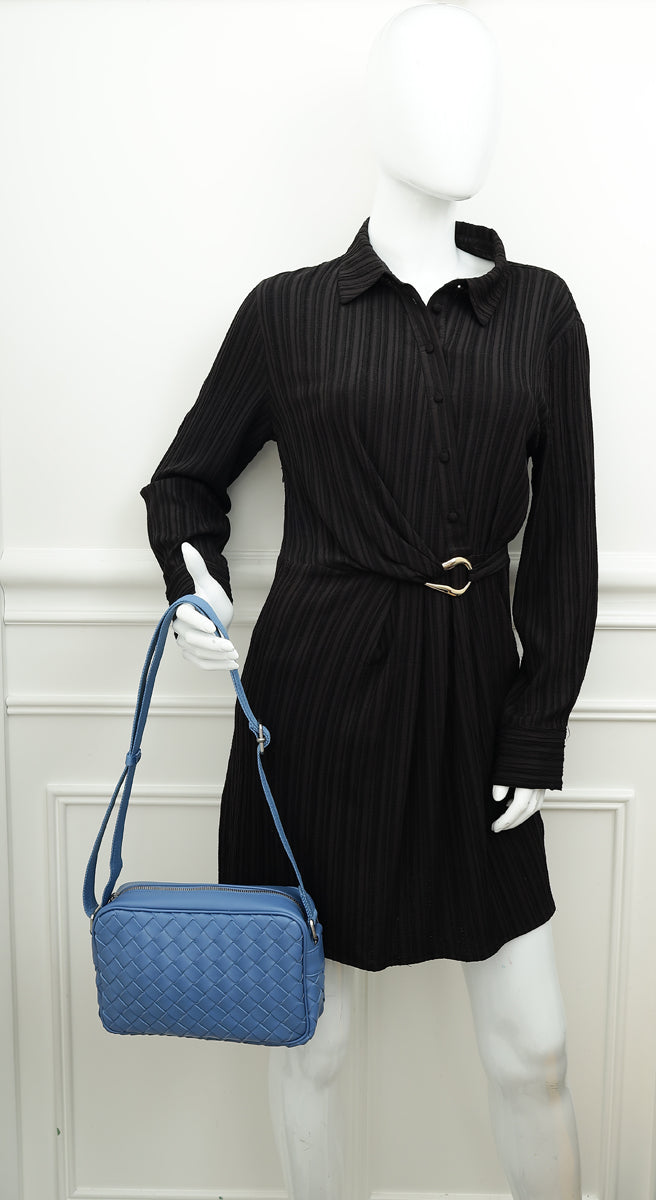 Bottega Veneta Blue Intrecciato Men's Classic Camera Bag