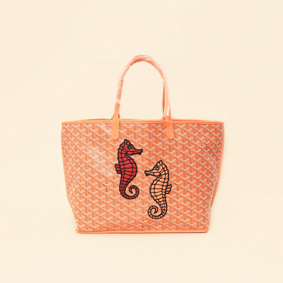 Goyardine Coral Ltd. Ed. Reversible Embroidered Seahorse Anjou PM Bag