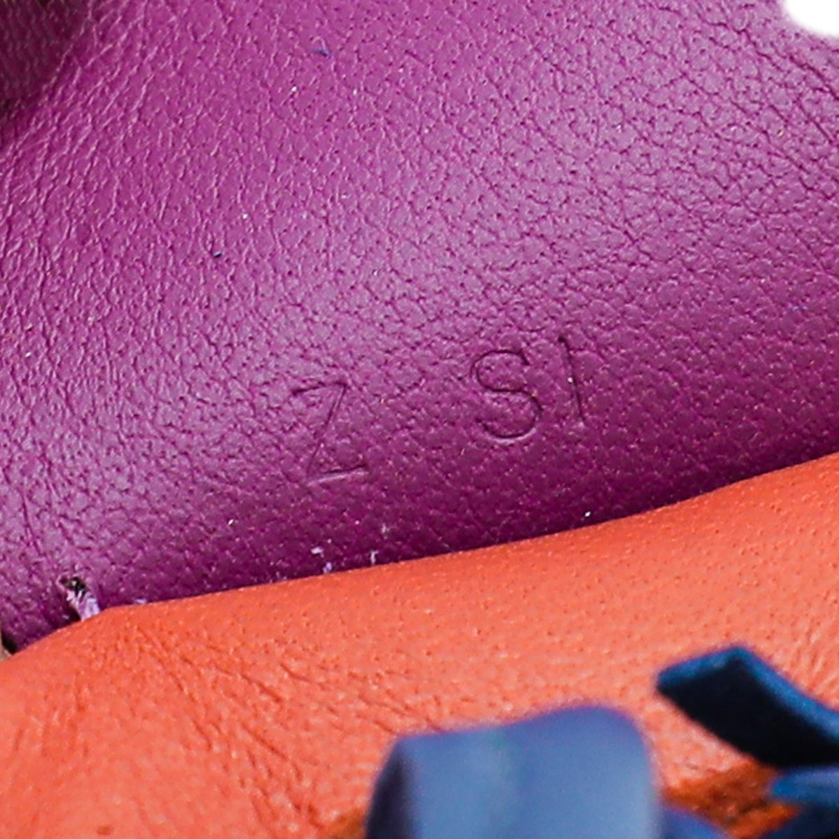 Material: Cuivre Lambskin Leather with Bleu Strap and Violet Wings Leather Trim