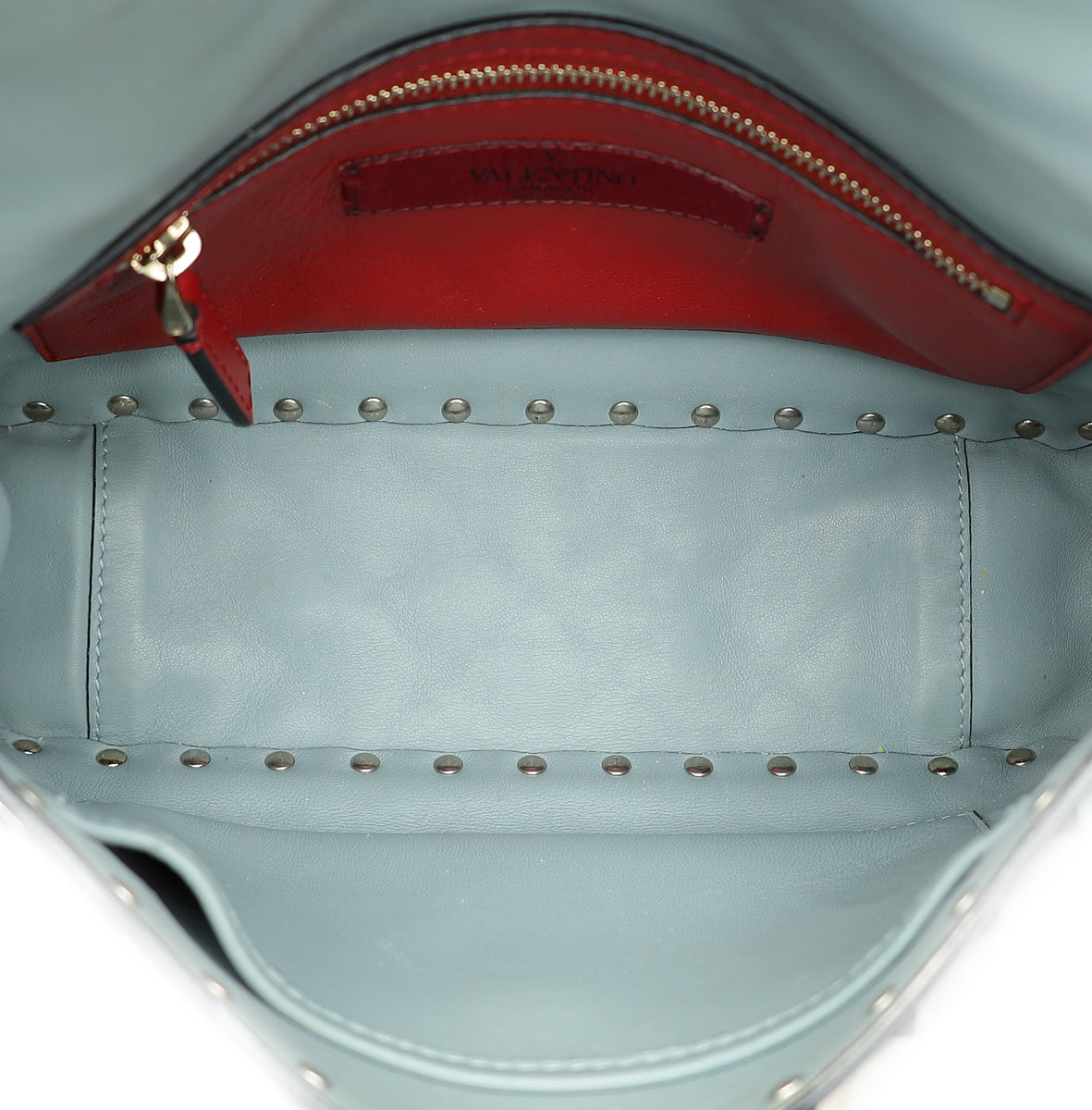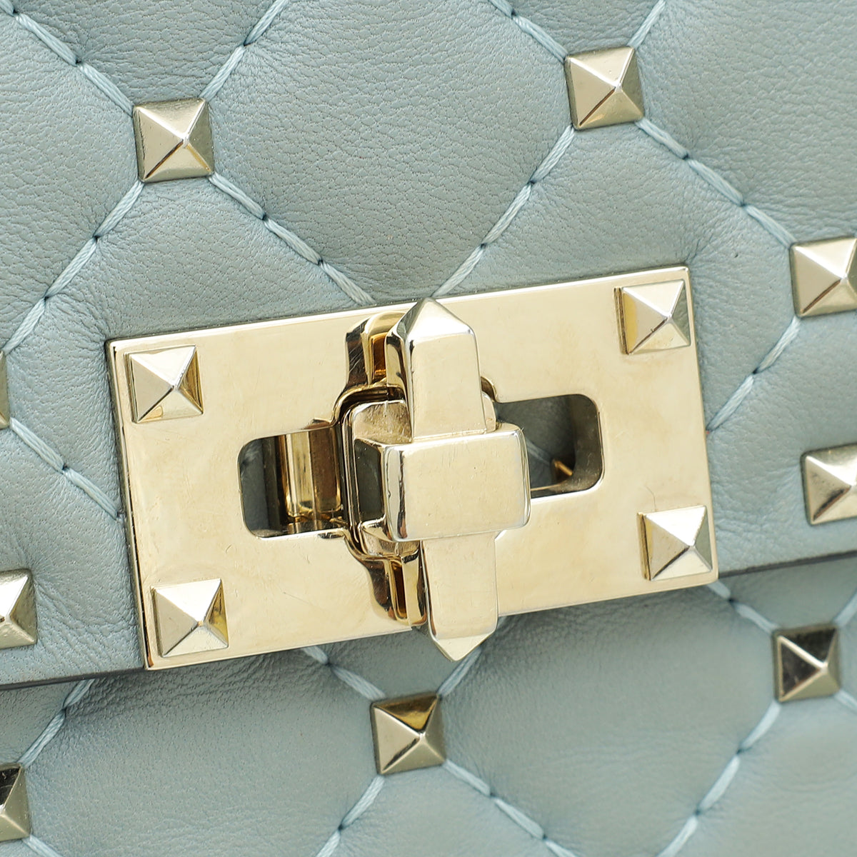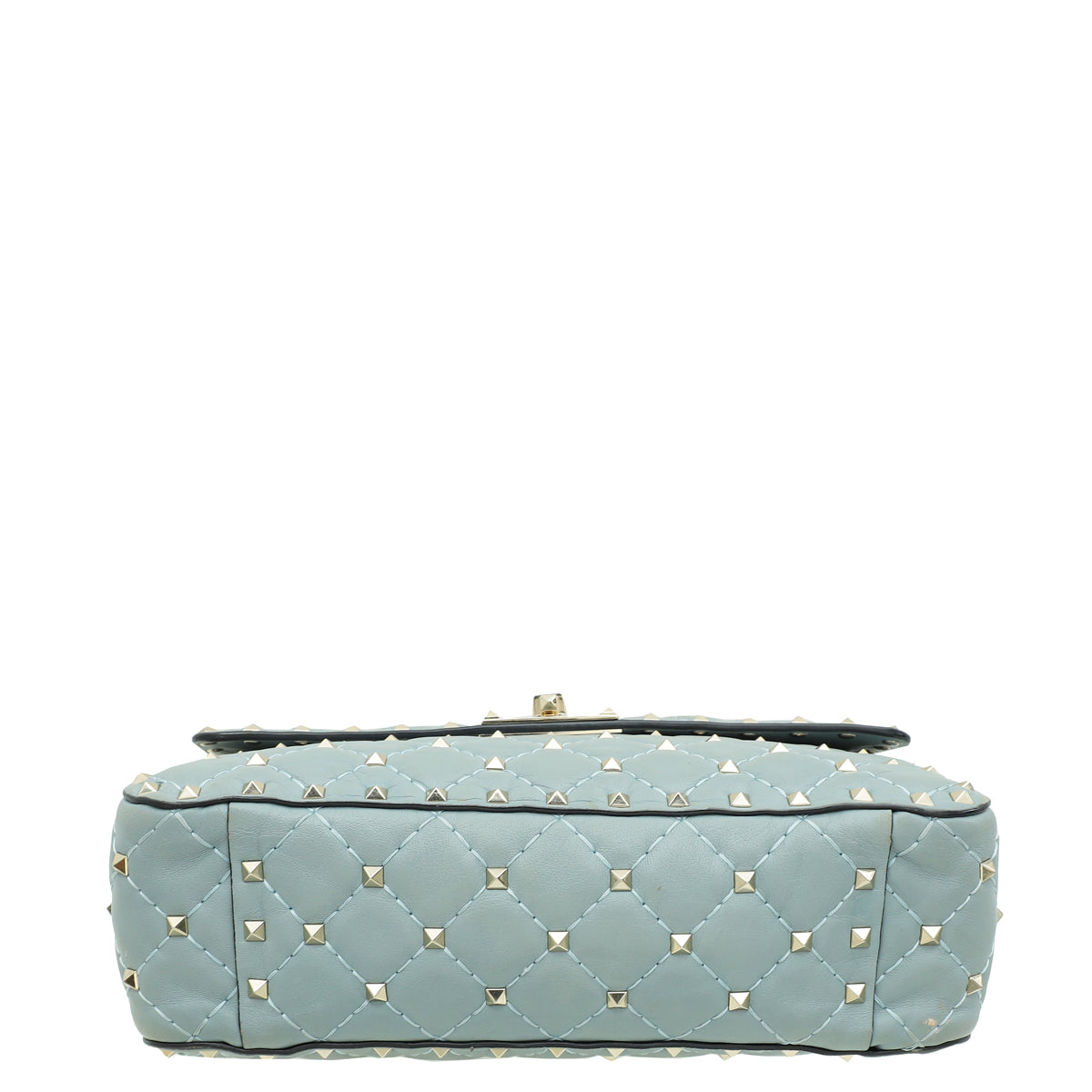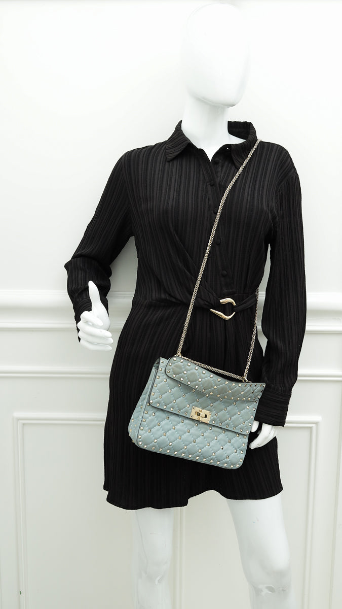 Valentino Grayish Blue Rockstud Spike Medium Flap Chain Bag