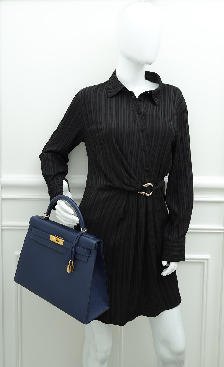 Hermes Bleu Saphire Kelly 32 Sellier Bag