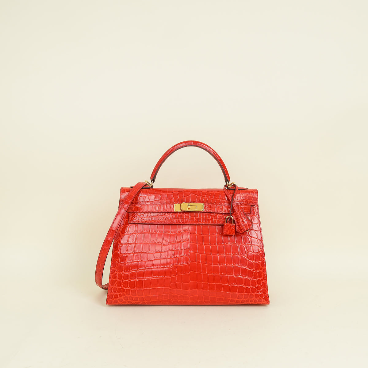 Hermes Bougainvillea Shiny Niloticus Crocodile Sellier Kelly 32 Bag