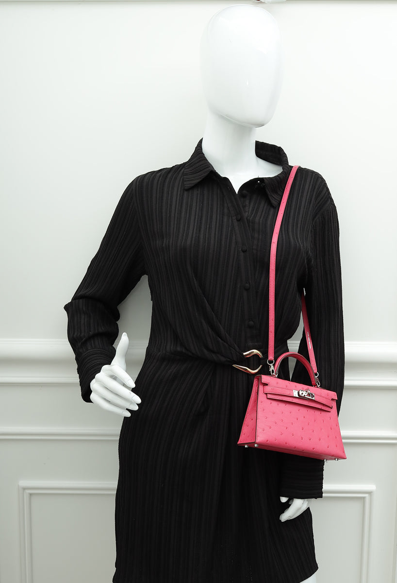 Hermes Rose Ostrich Tyrine Mini Kelly Bag