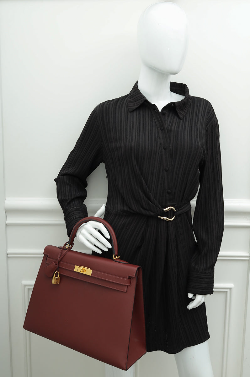 Hermes Rouge H Kelly 35 Sellier Sombrero Bag