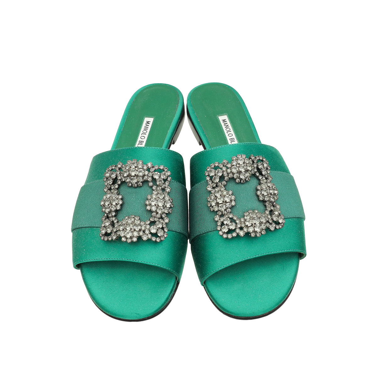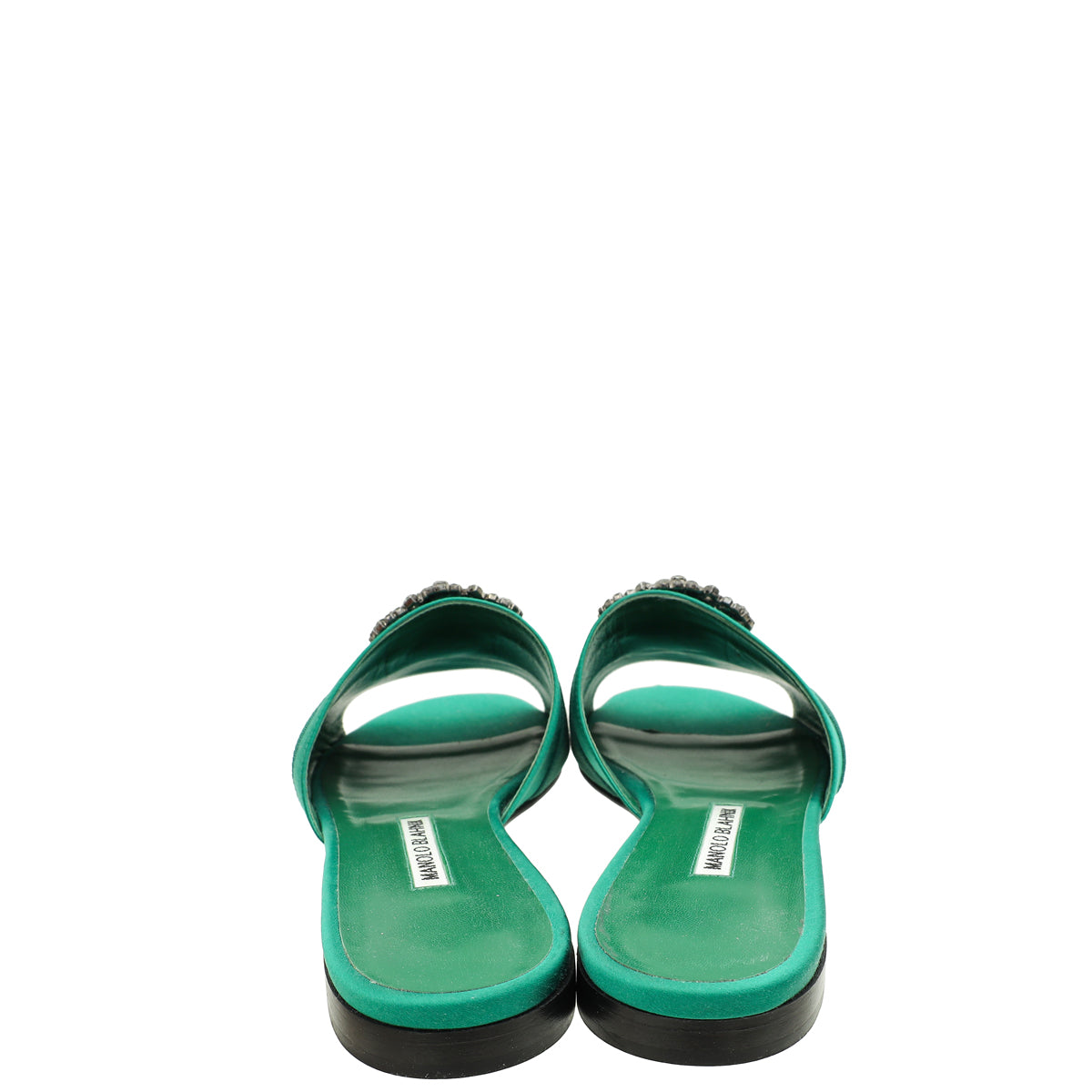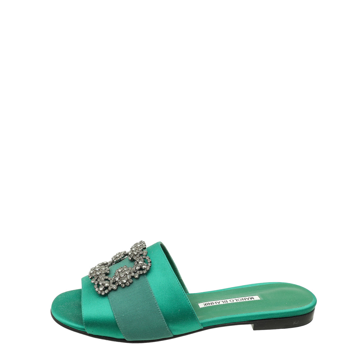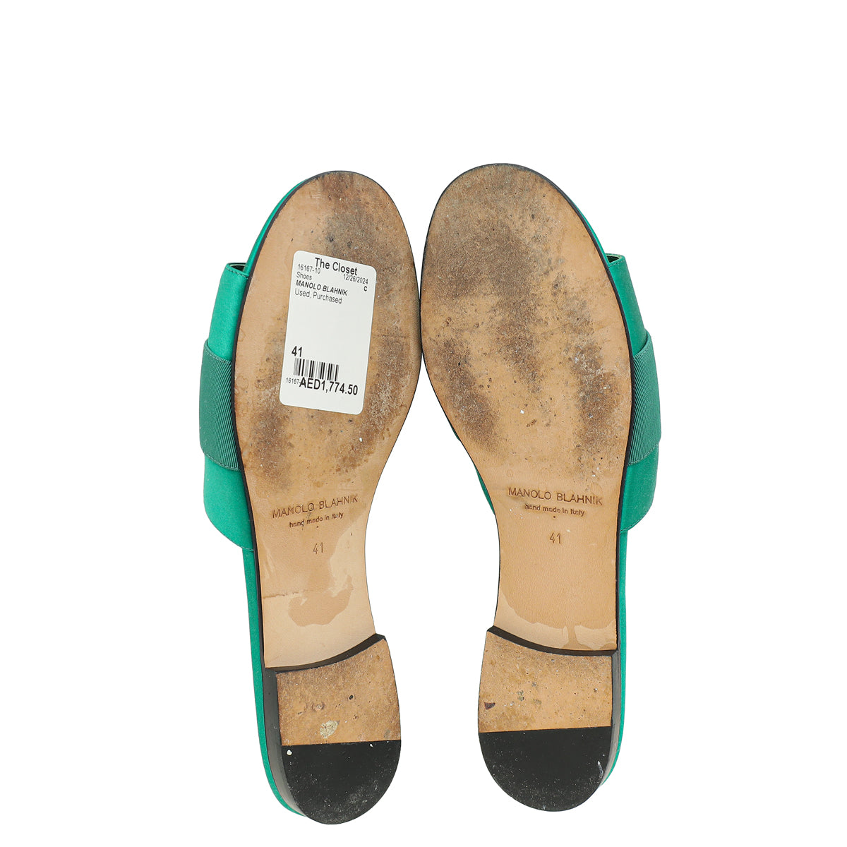 Manolo Blahnik Green Martamod Flat Slide Sandal 41