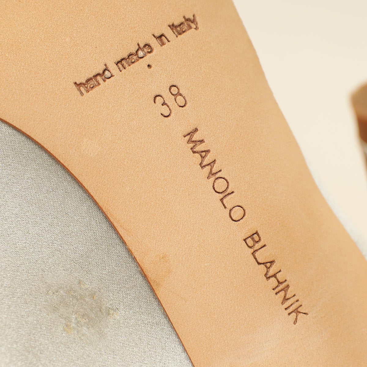 Manolo Blahnik Light Grey Hangisi Satin Embellished Pump 38