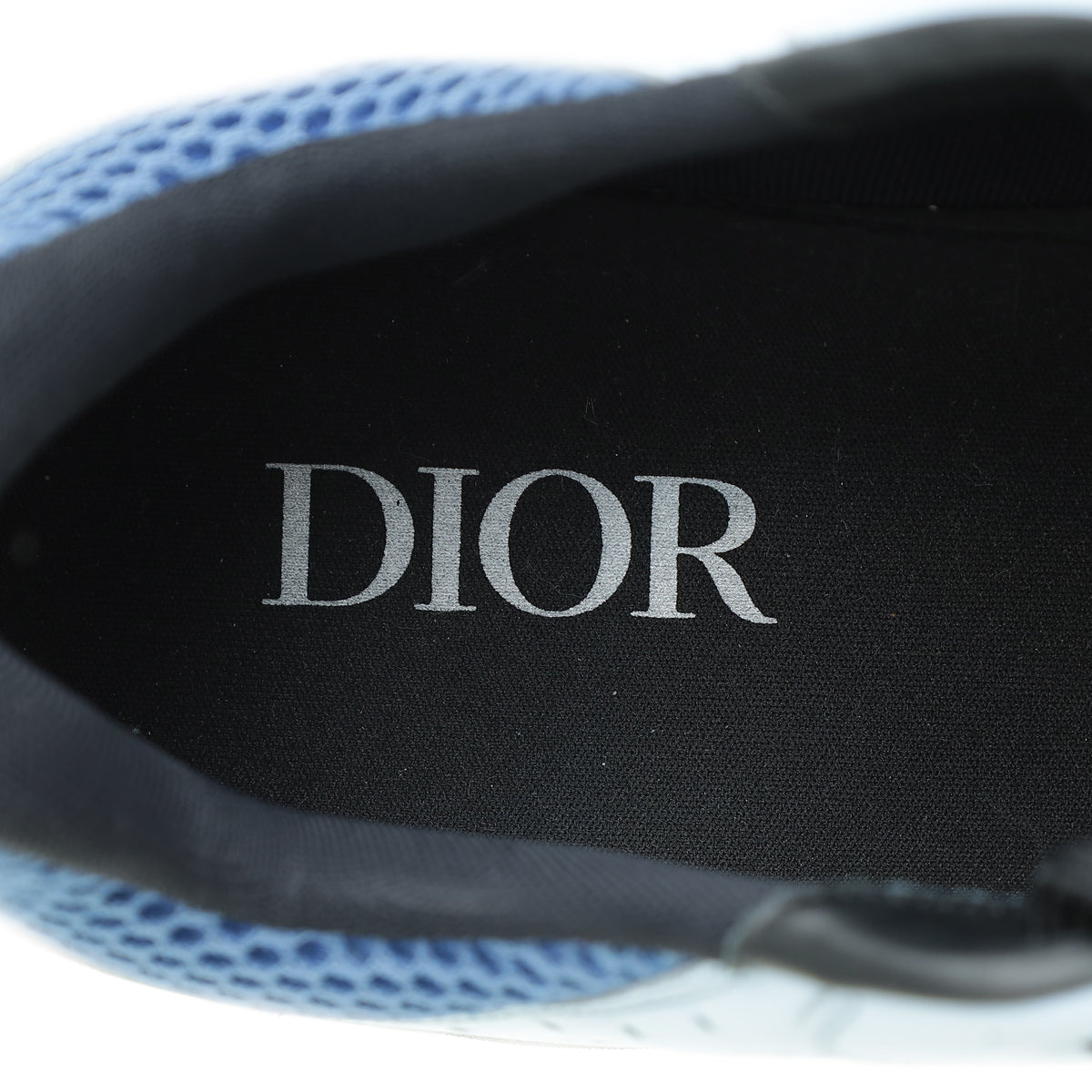 - Material: Black/Blue Technical Mesh and Calfskin Leather Trim