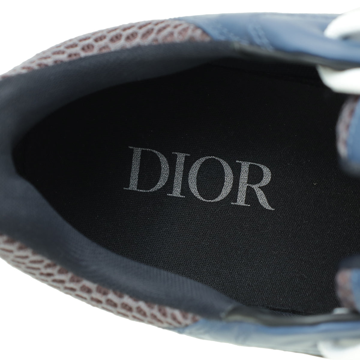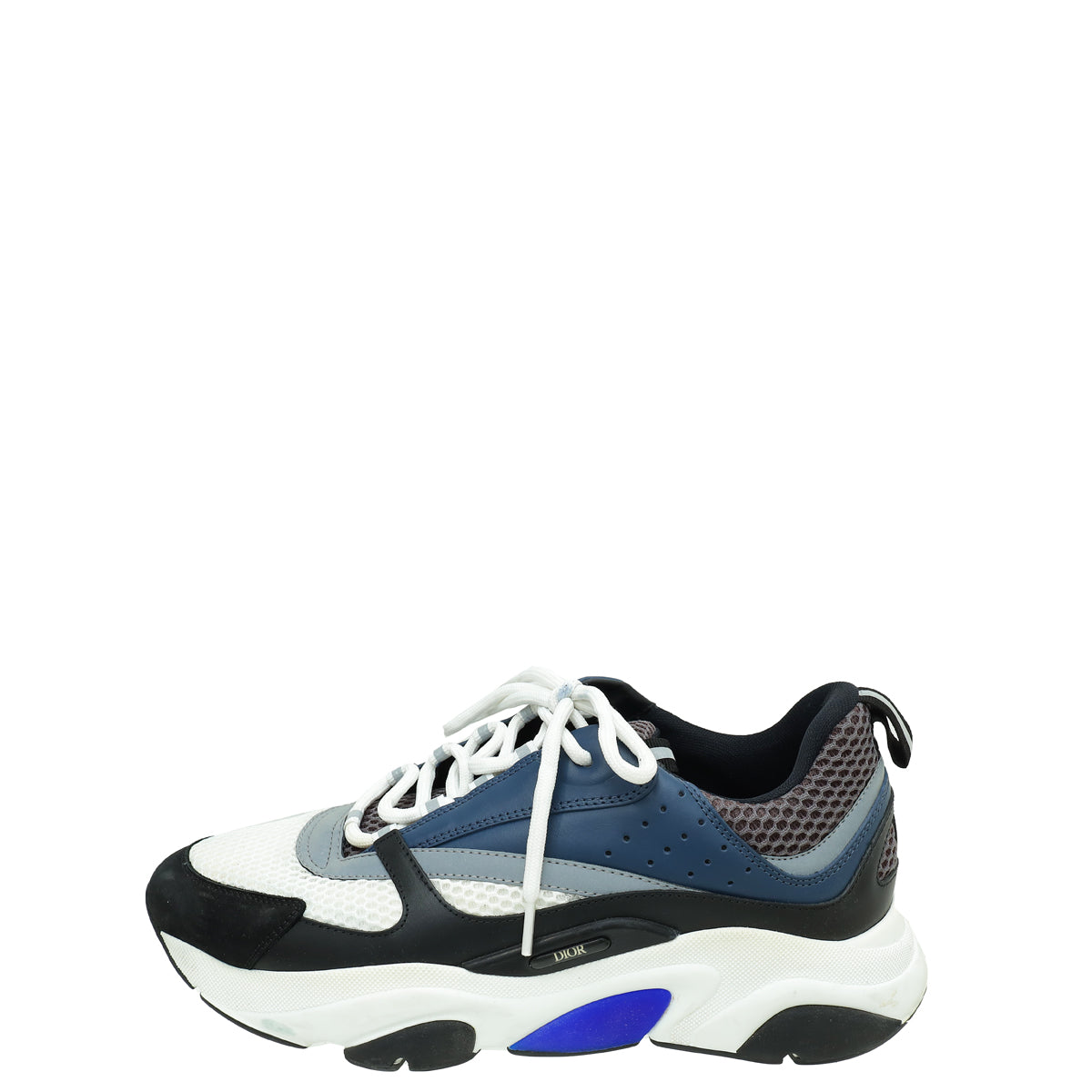 - Material: Black/White/ Blue Technical Mesh and Calfskin Leather Trim