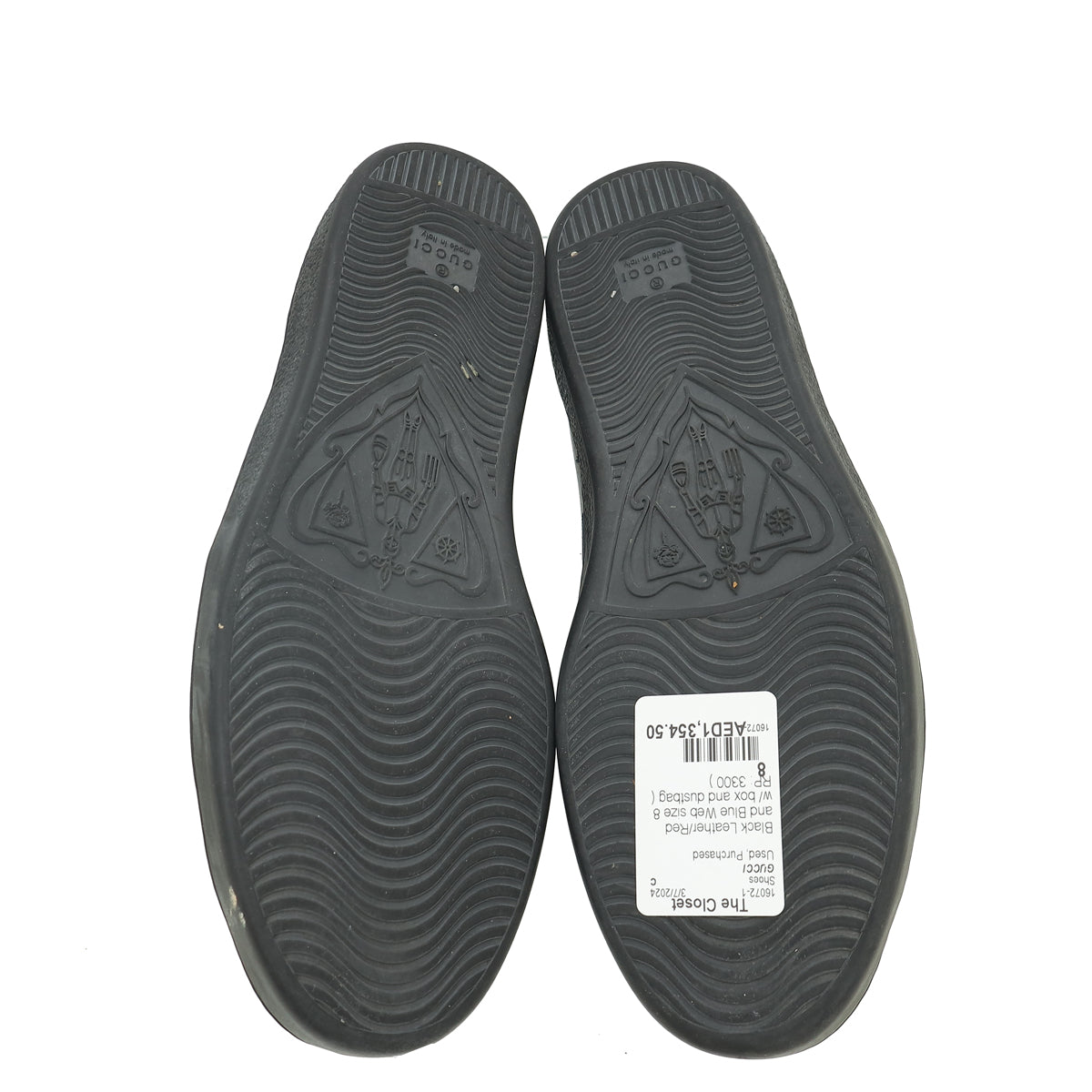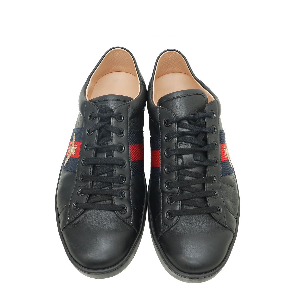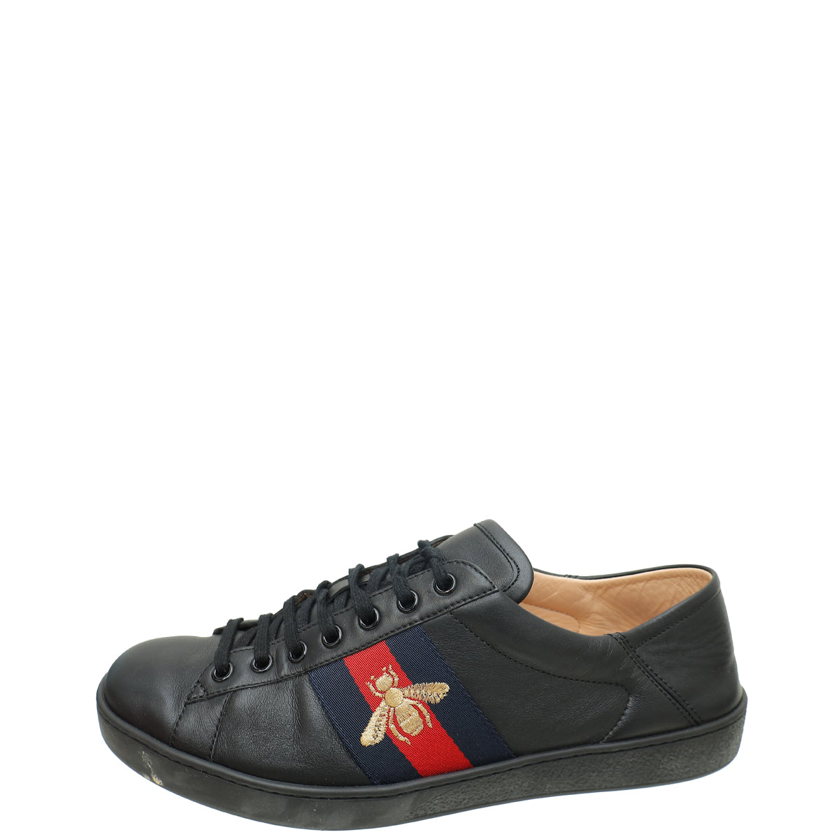 Material: Black Leather with Blue/Red Web and Gold Embroidered Bee