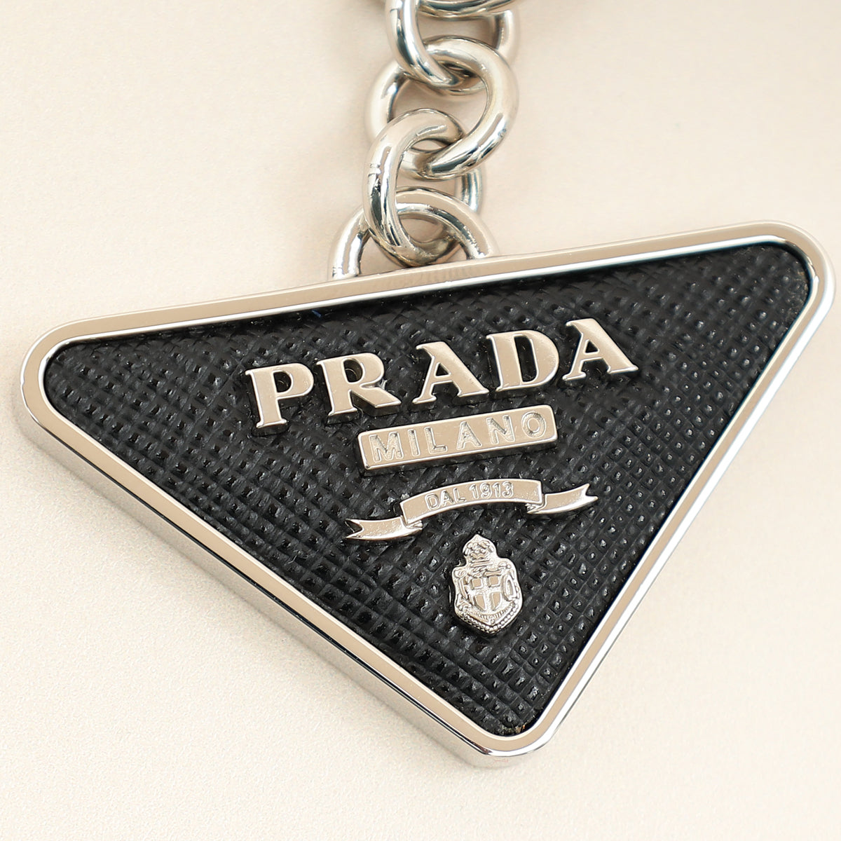 Prada Black Triangle Logo Metal Keychain-Prada-THE CLOSET