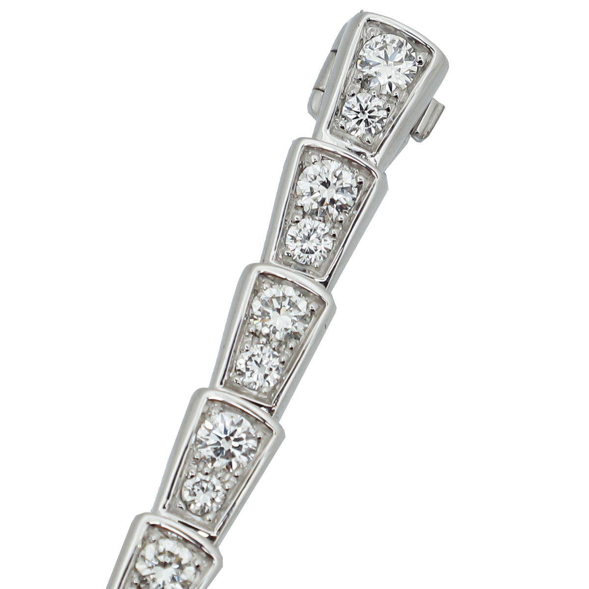 Bvlgari 18K White Gold Serpenti Viper Slim Necklace W/ Full Pave Diamonds