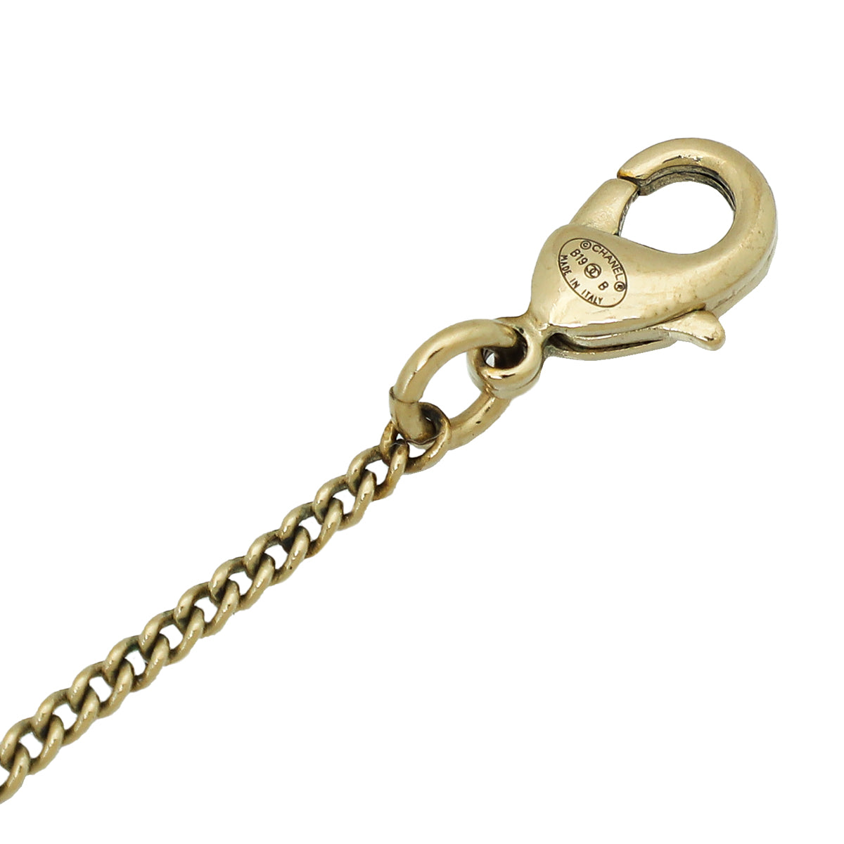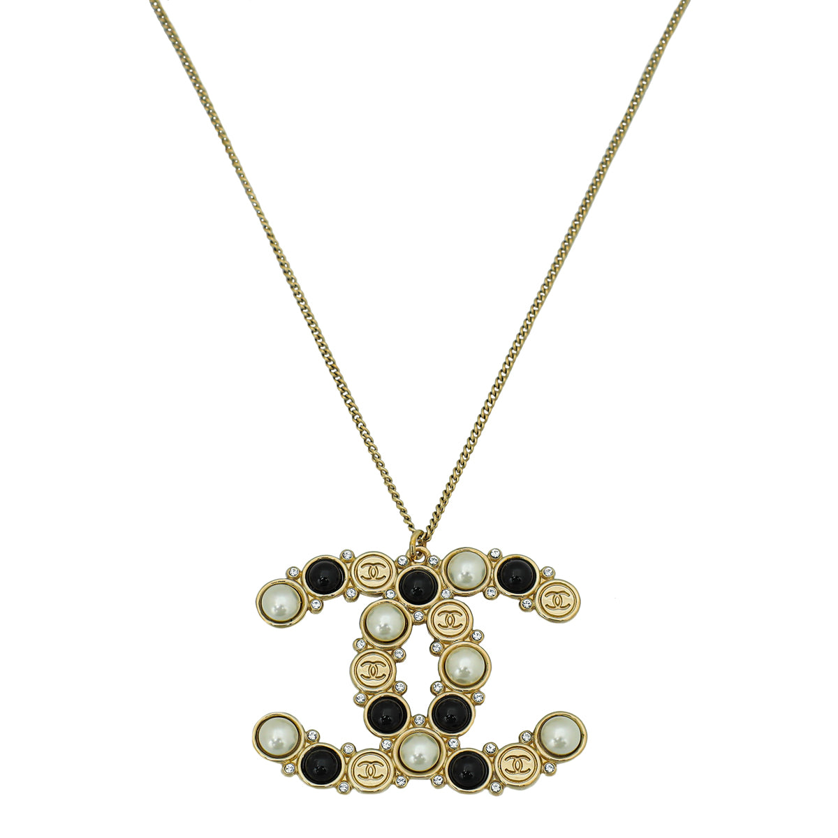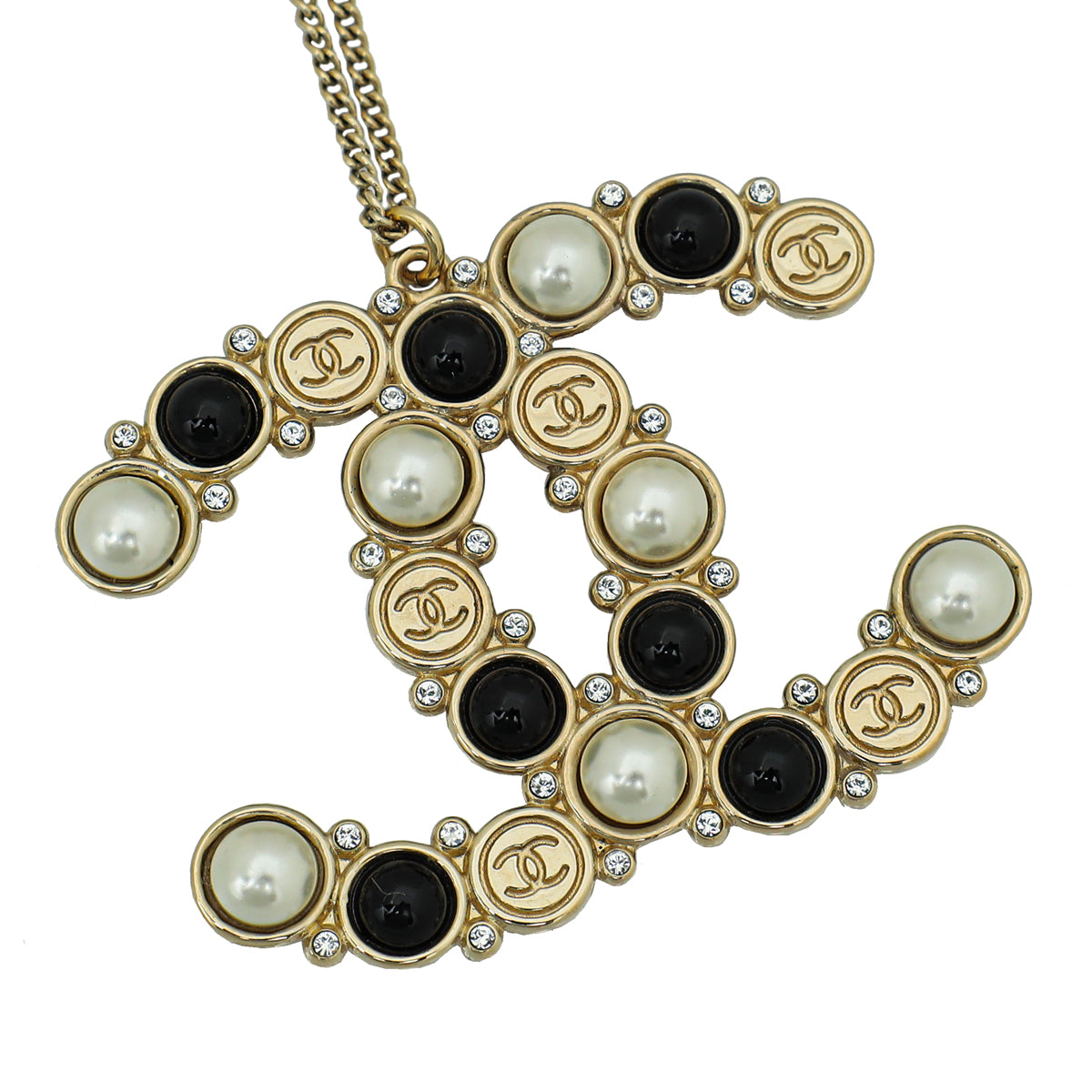Material: Gold Tone Metal CC Logo with Black/White Faux Pearls