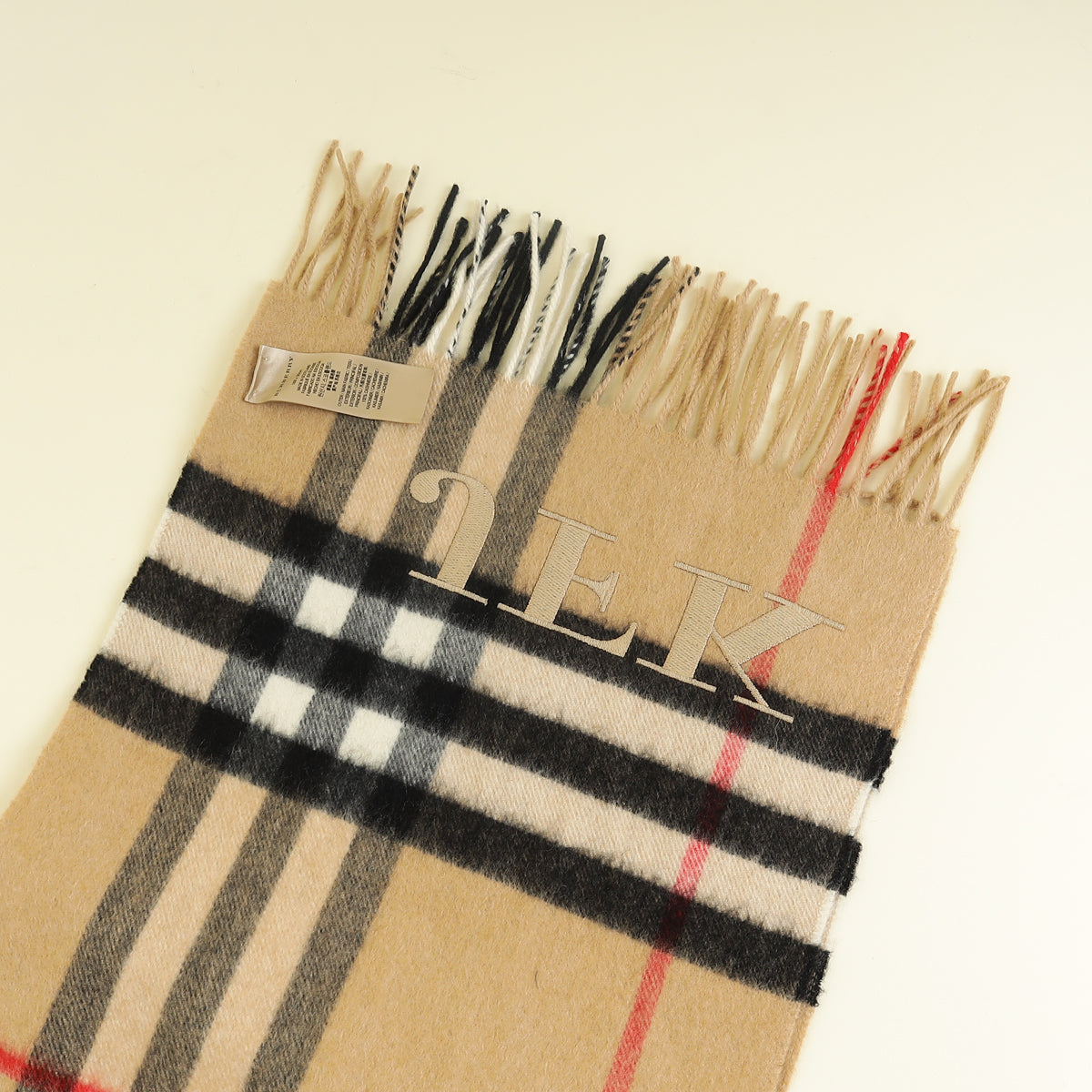 Burberry Archive Beige Check Cashmere Scarf w/ Initials JFK