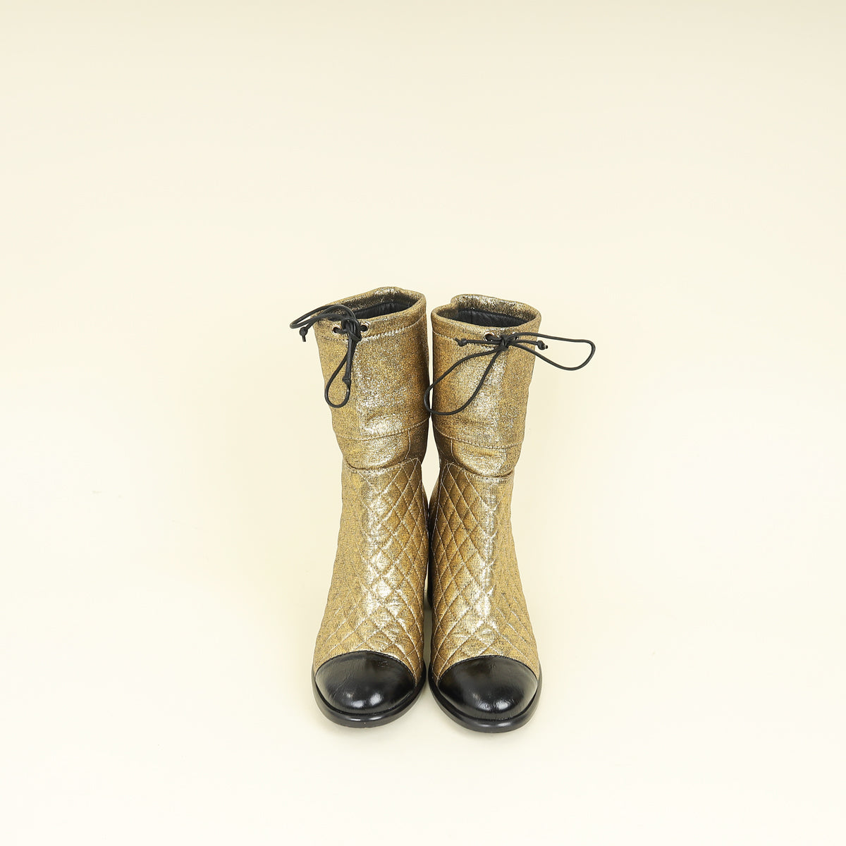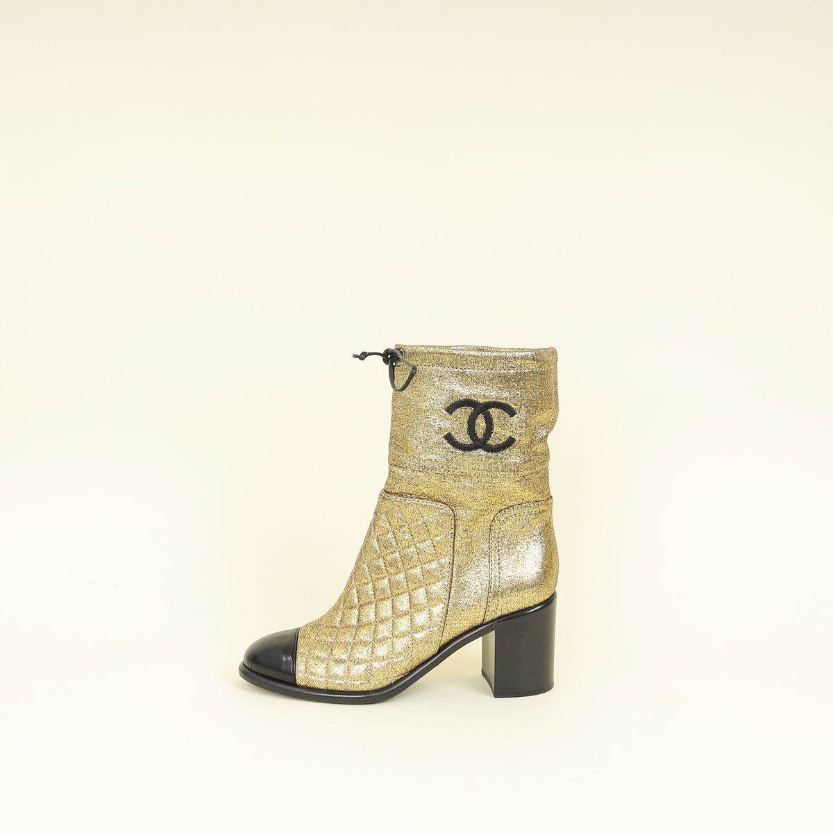 Chanel Bicolor CC Cap Toe Quilted Ankle Boot 39