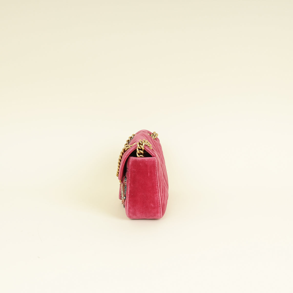 Gucci Dark Pink GG Marmont Velvet Embroidered Shoulder Bag