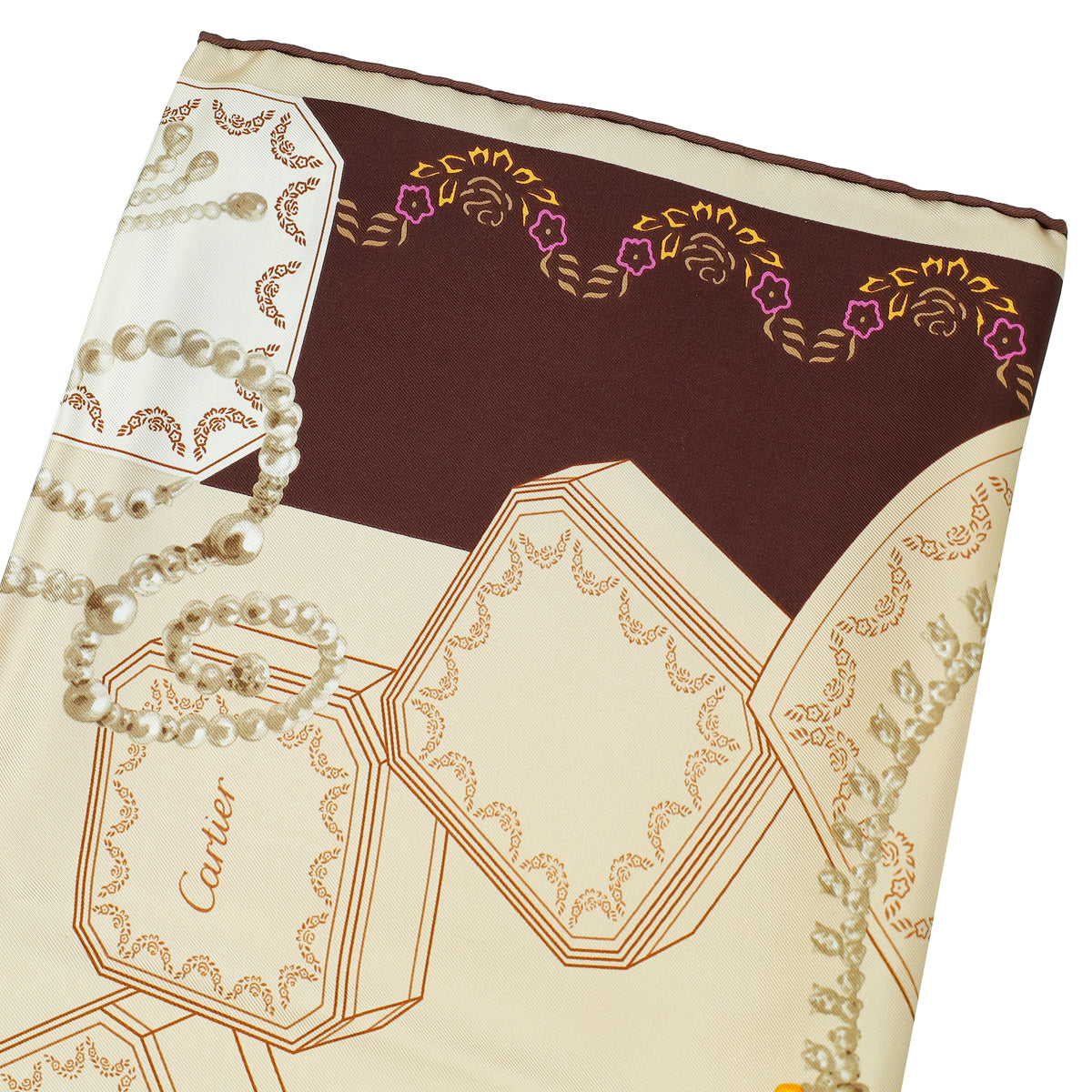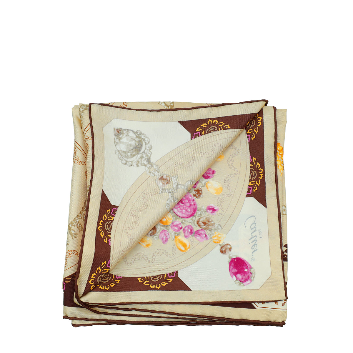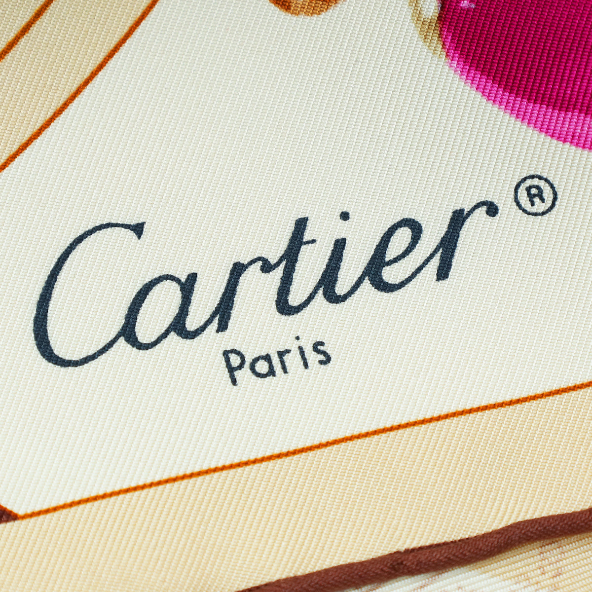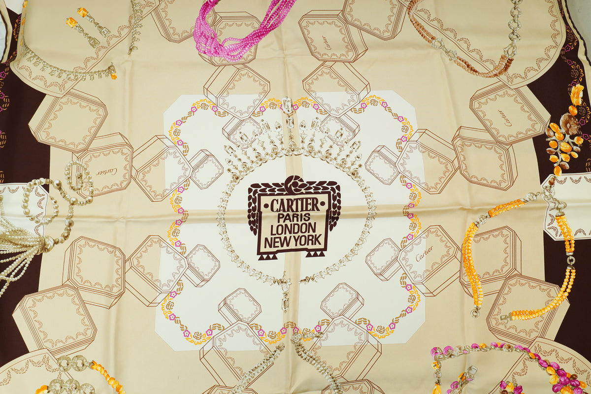 Cartier Multicolor Paris London New York Print Jewelry Print Silk Scarf