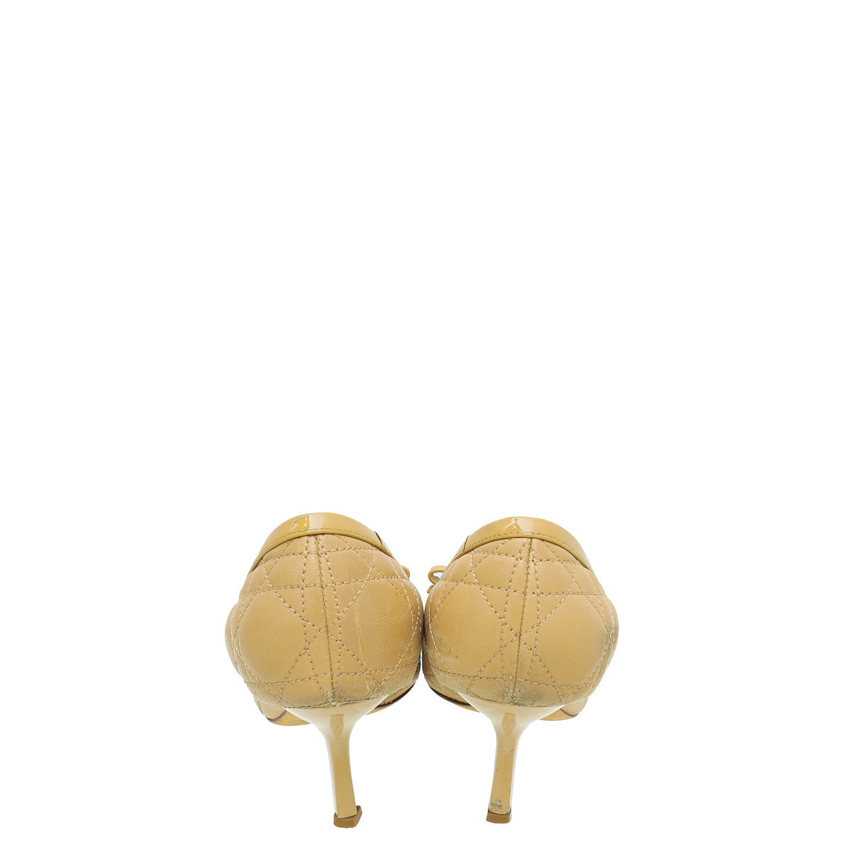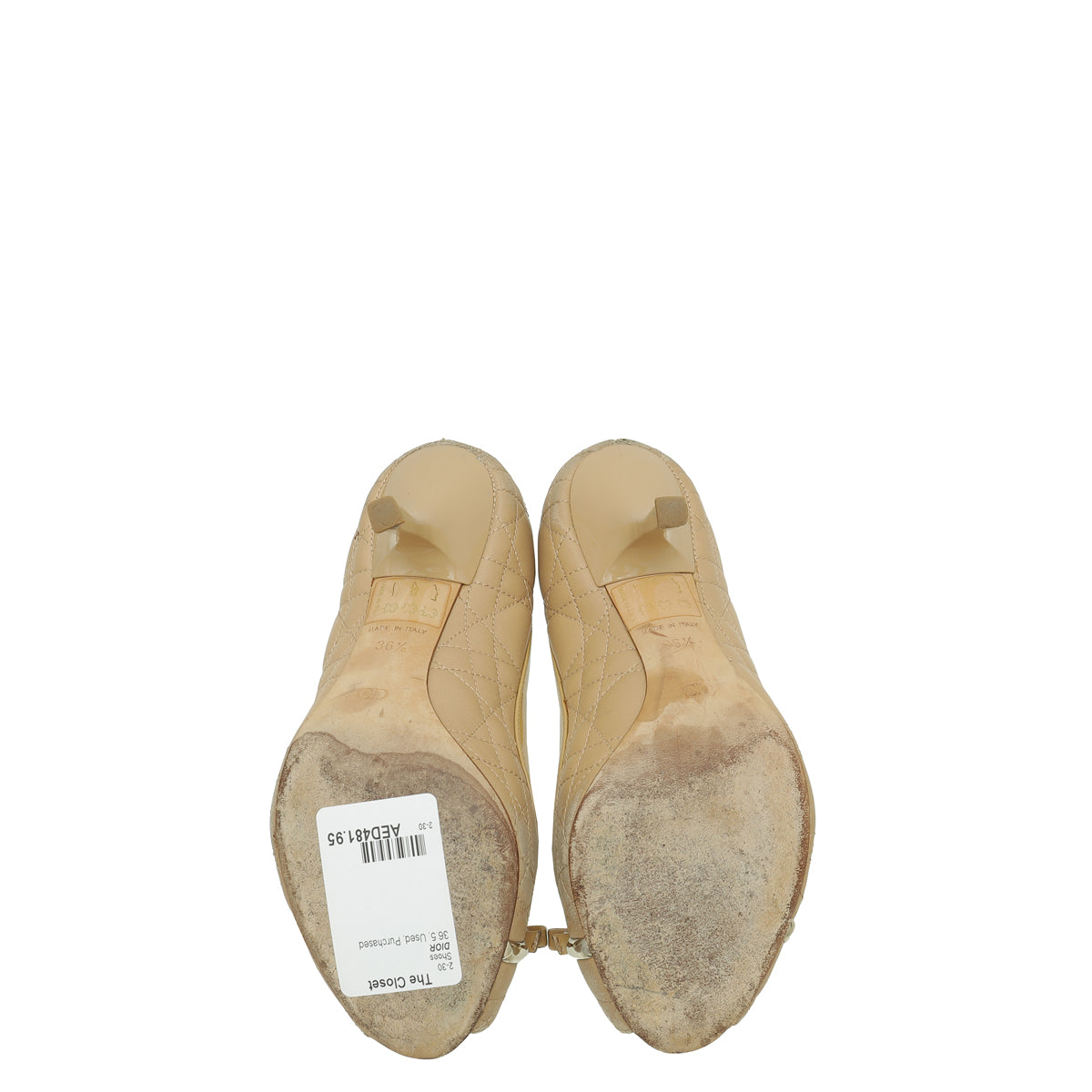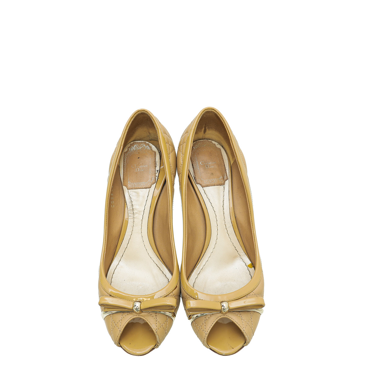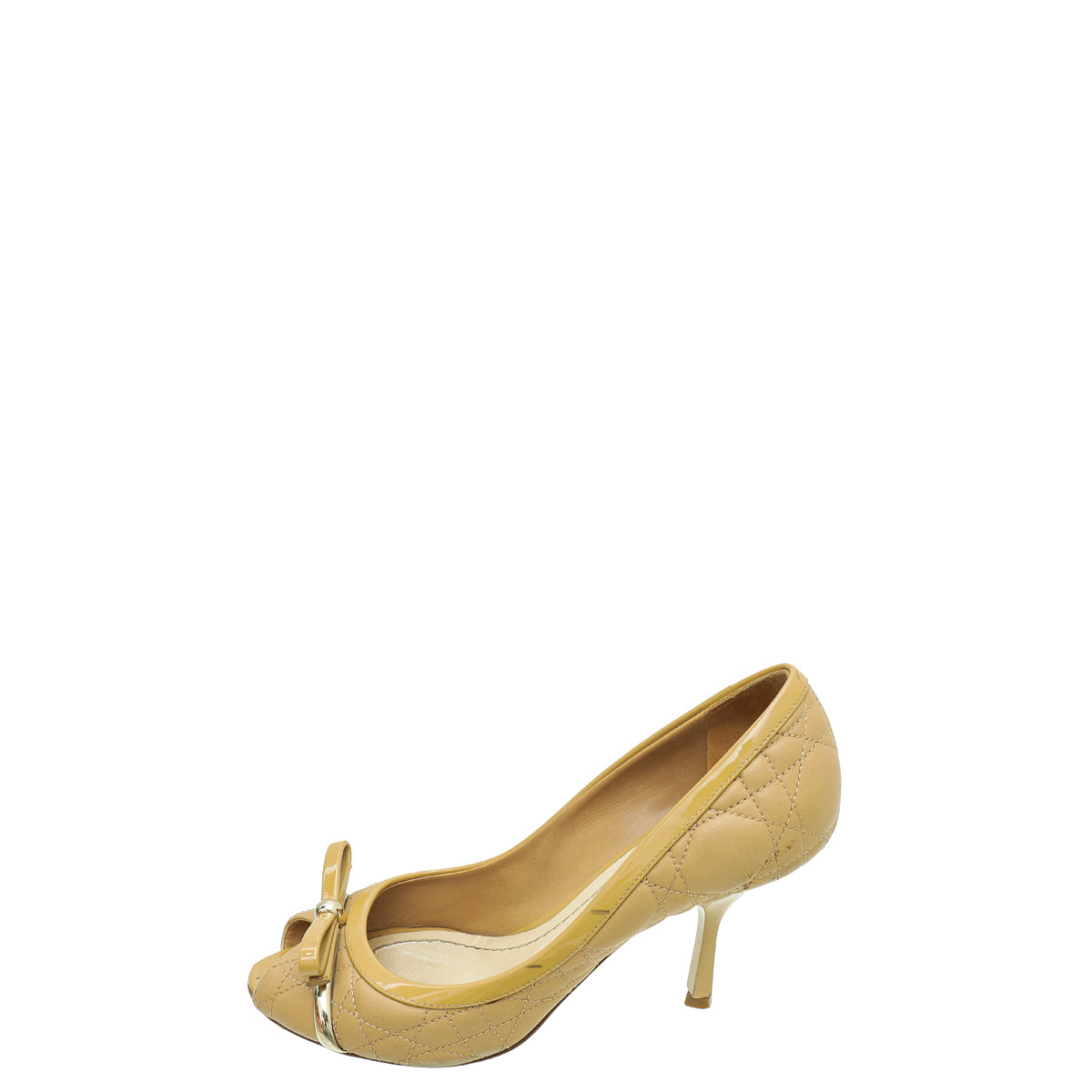 Christian Dior Beige Peep Toe Bow Cannage Pump 36.5