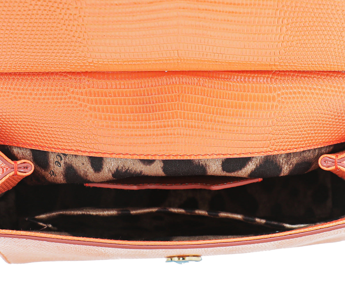 Dolce & Gabbana Orange Iguana Print Sicily Small Chain Bag