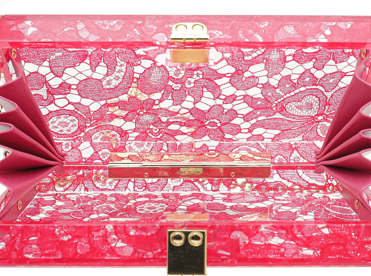 Dolce & Gabbana Red Plexiglass and Lace Box Pocket Clutch