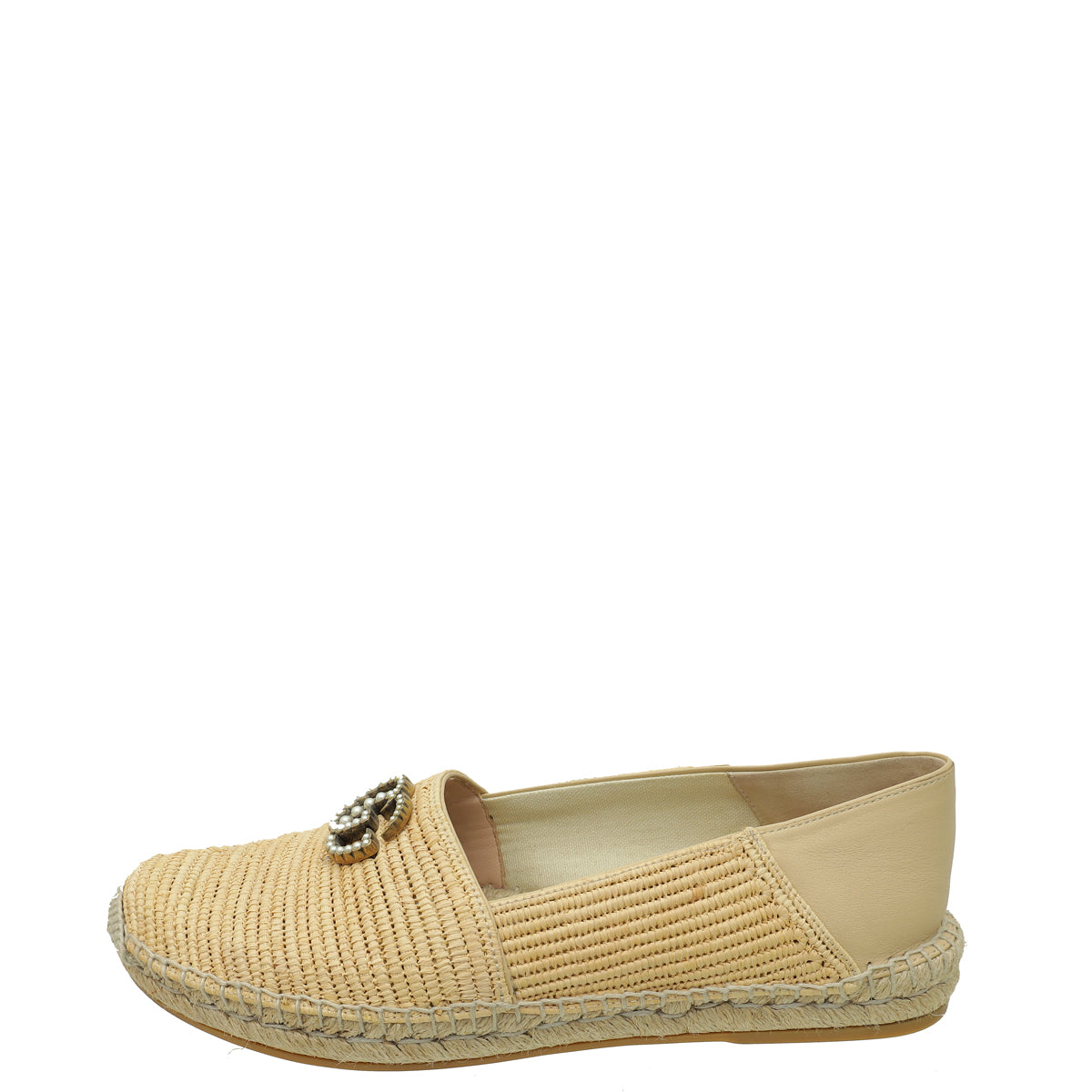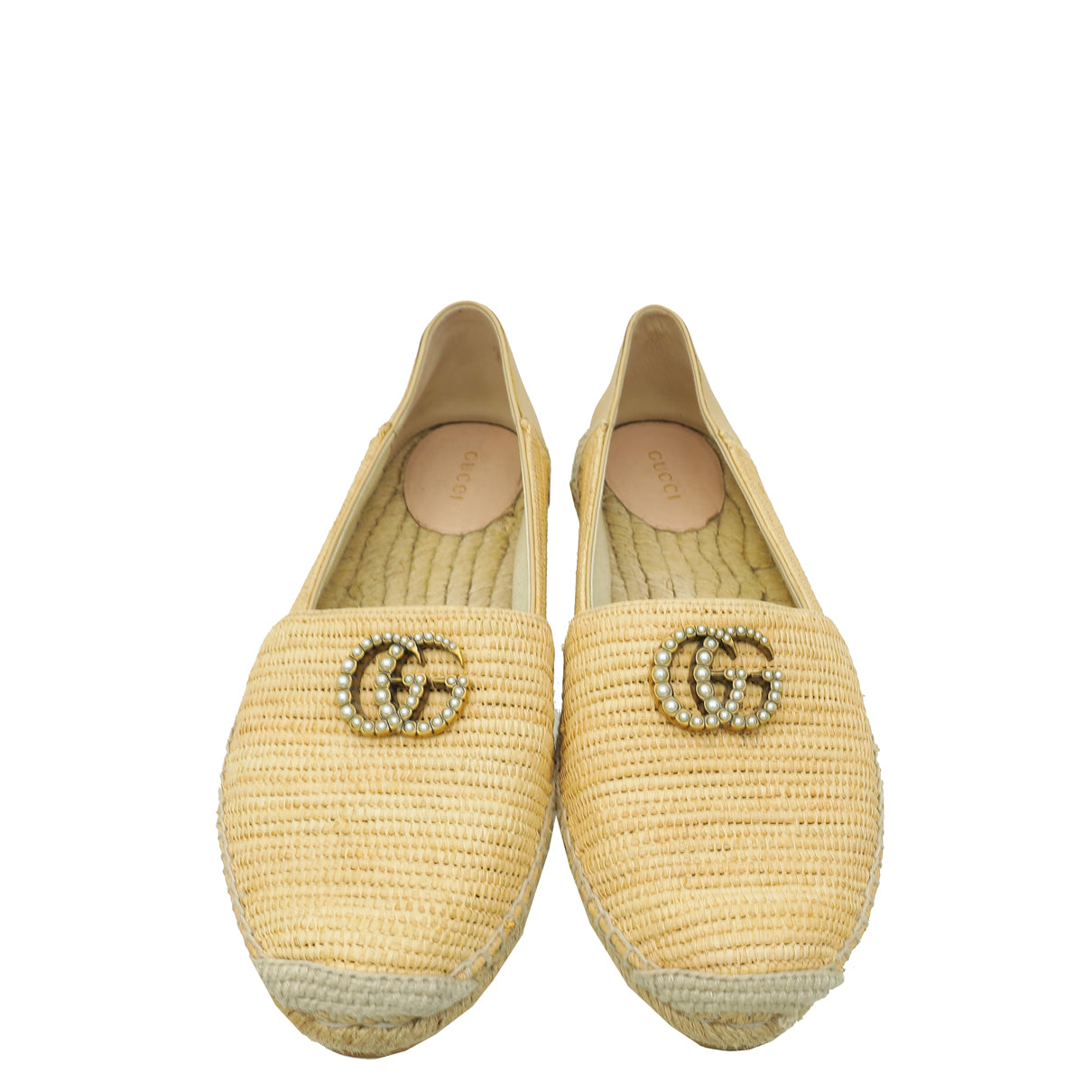 Material: Natural Raffia and Beige Leather Trim and Double G Embellishment with Pearls