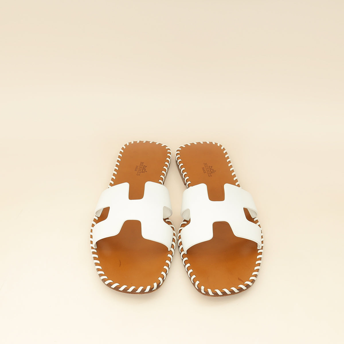 Hermes Blanc Oran Braided Sole Edge Sandal 40