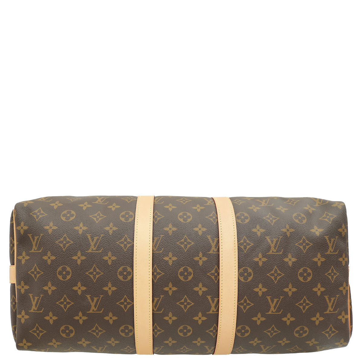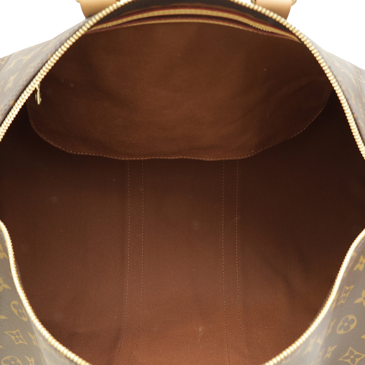 Louis Vuitton Brown Monogram Keepall Bandouliere 45 Bag W/ A.N Initials on Leather Tag