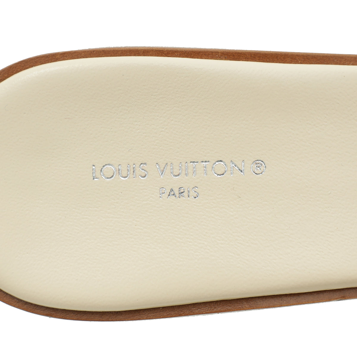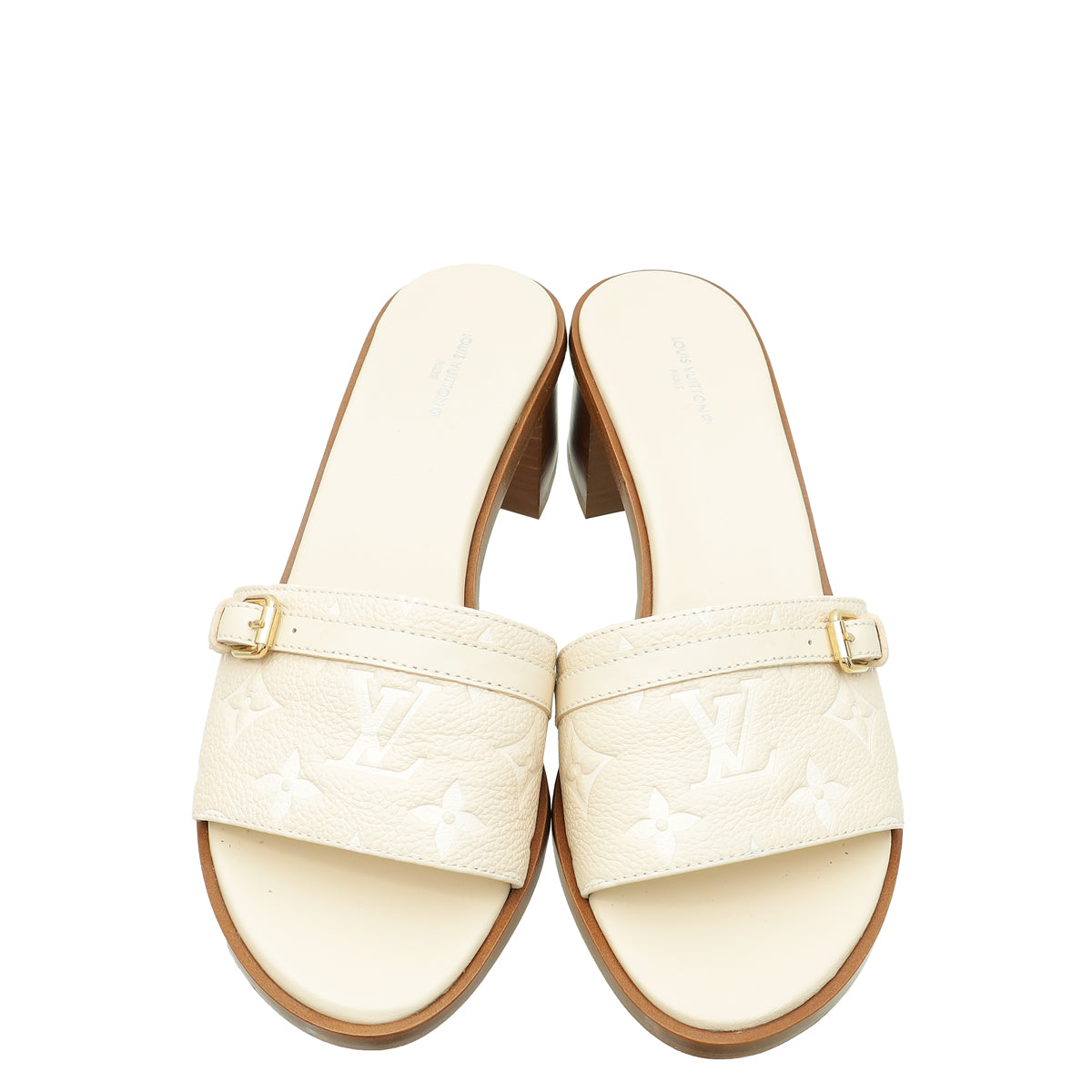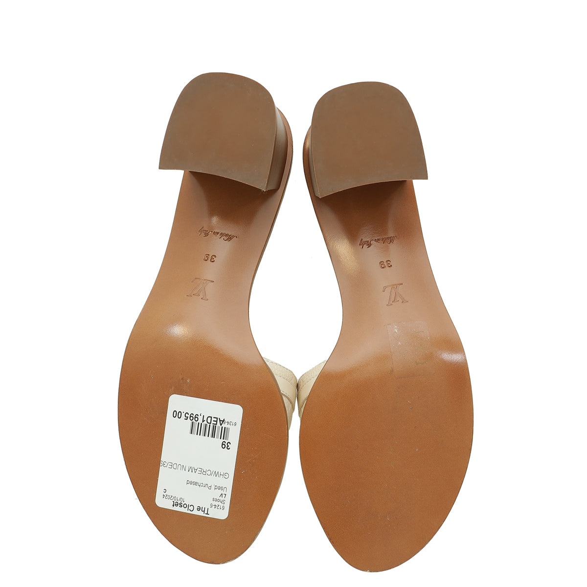 Louis Vuitton Cream Nude Monogram Empreinte Lockit Mules 39
