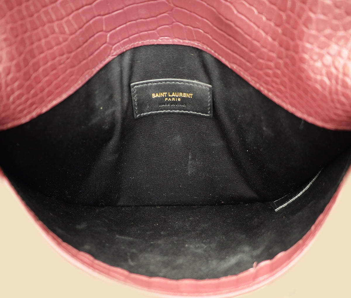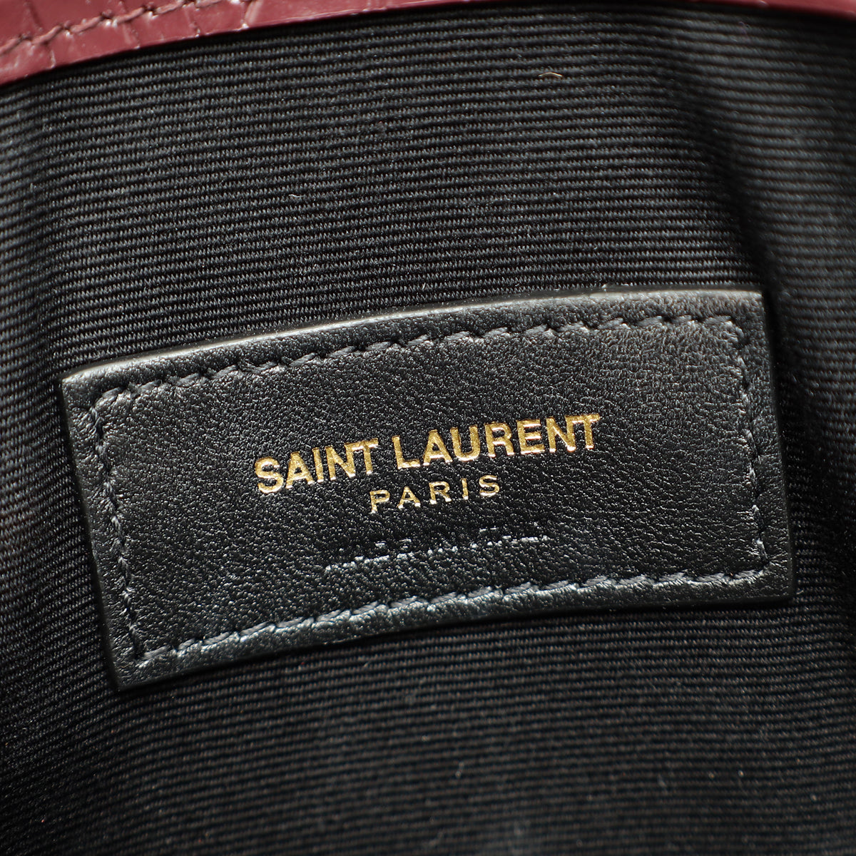 YSL Burgundy Crocodile Embossed Uptown Pouch