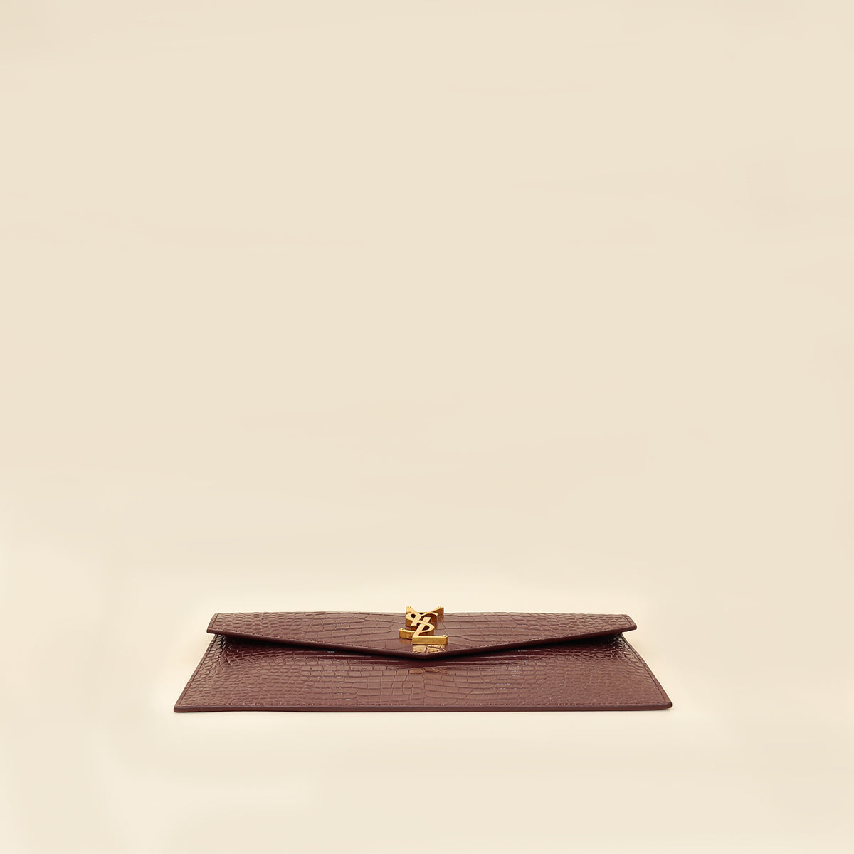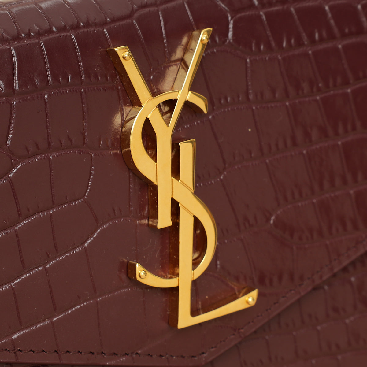 YSL Burgundy Crocodile Embossed Uptown Pouch-YSL-THE CLOSET
