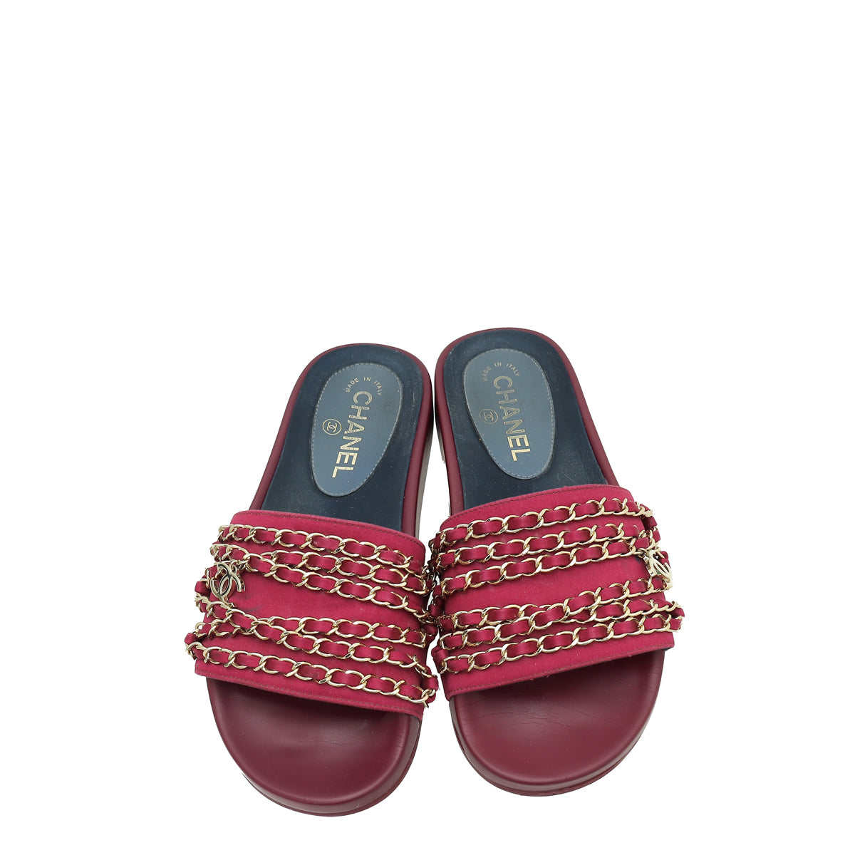 Chanel Bicolor CC Chain Pool Slide Mules 37