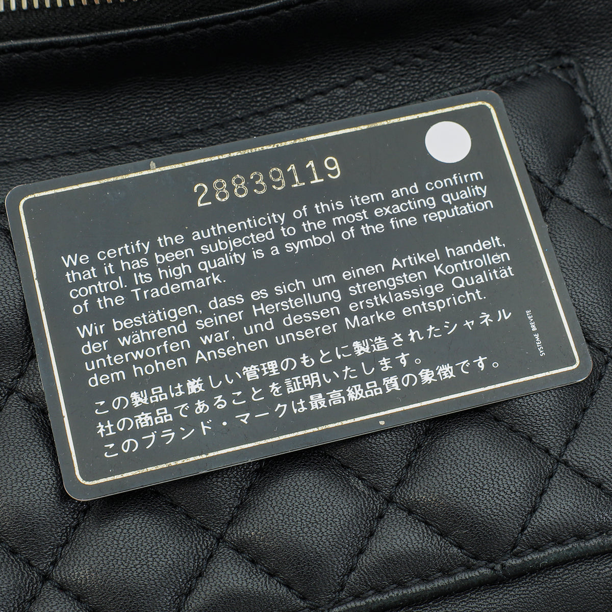 Material: Black Quilted Lambskin Leather