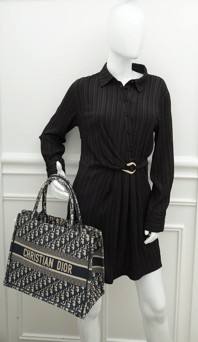 Christian Dior Bicolor Oblique Embroidered Book Tote Medium Bag