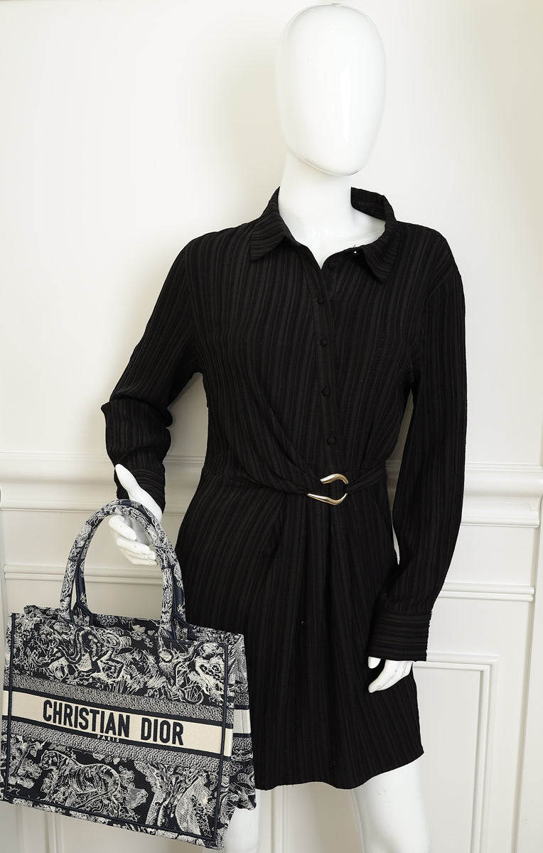 Christian Dior Bicolor Toile De Jouy Reverse Embroidered Book Medium Tote Bag
