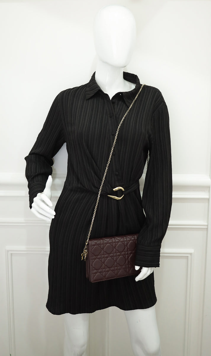 Christian Dior Burgundy Lady Dior Cannage Chain Pouch