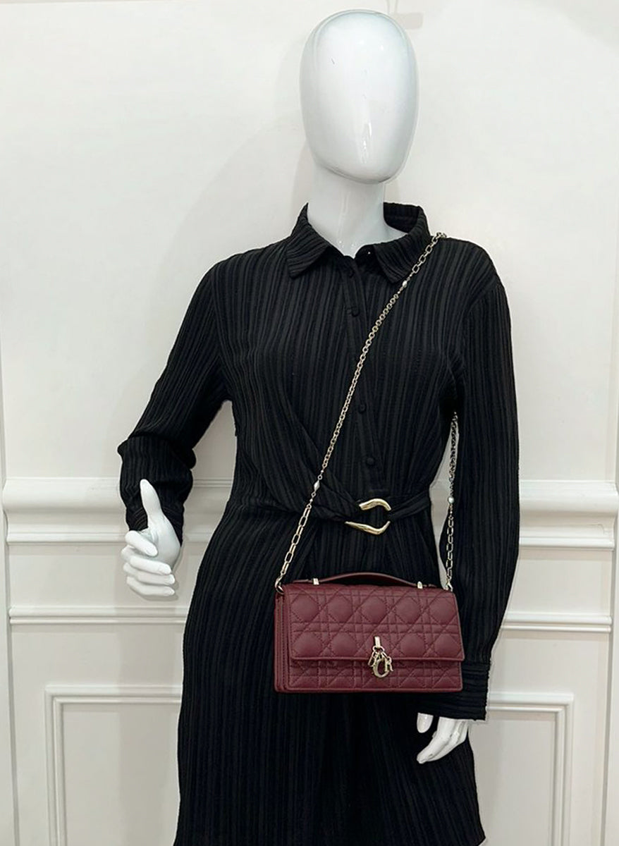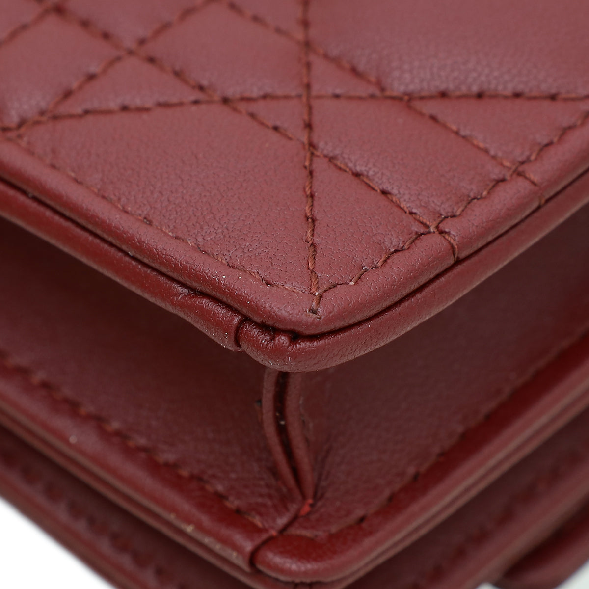 - Material: Burgundy Cannage Lambskin Leather with D.I.O.R. Charms