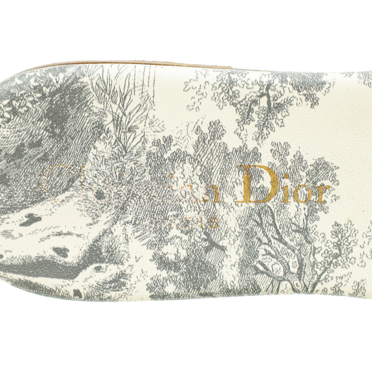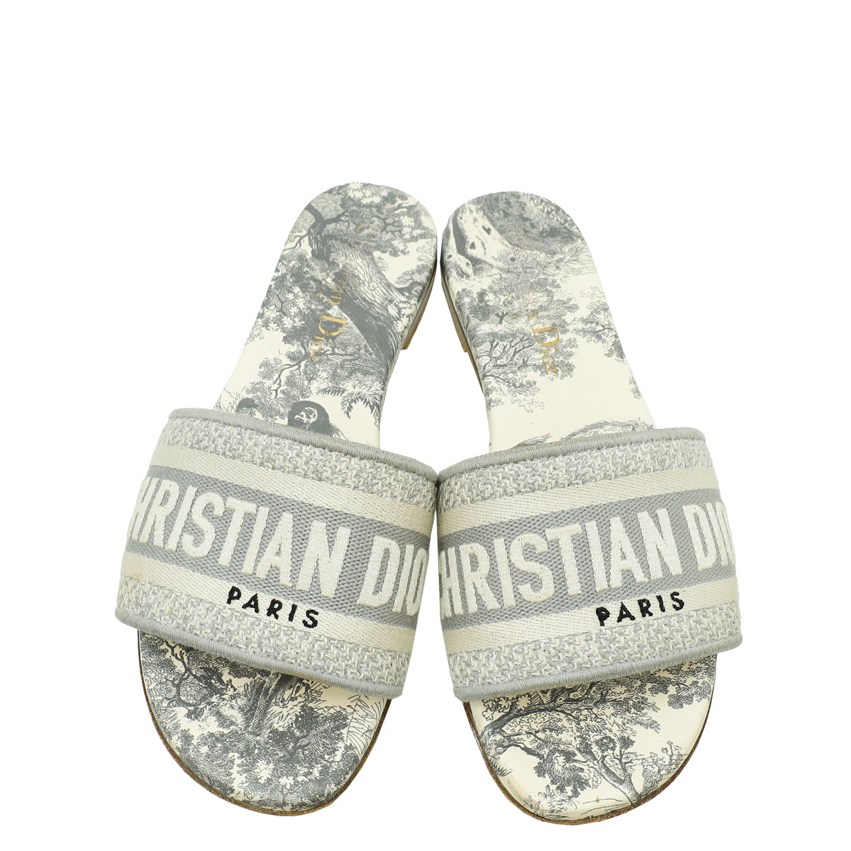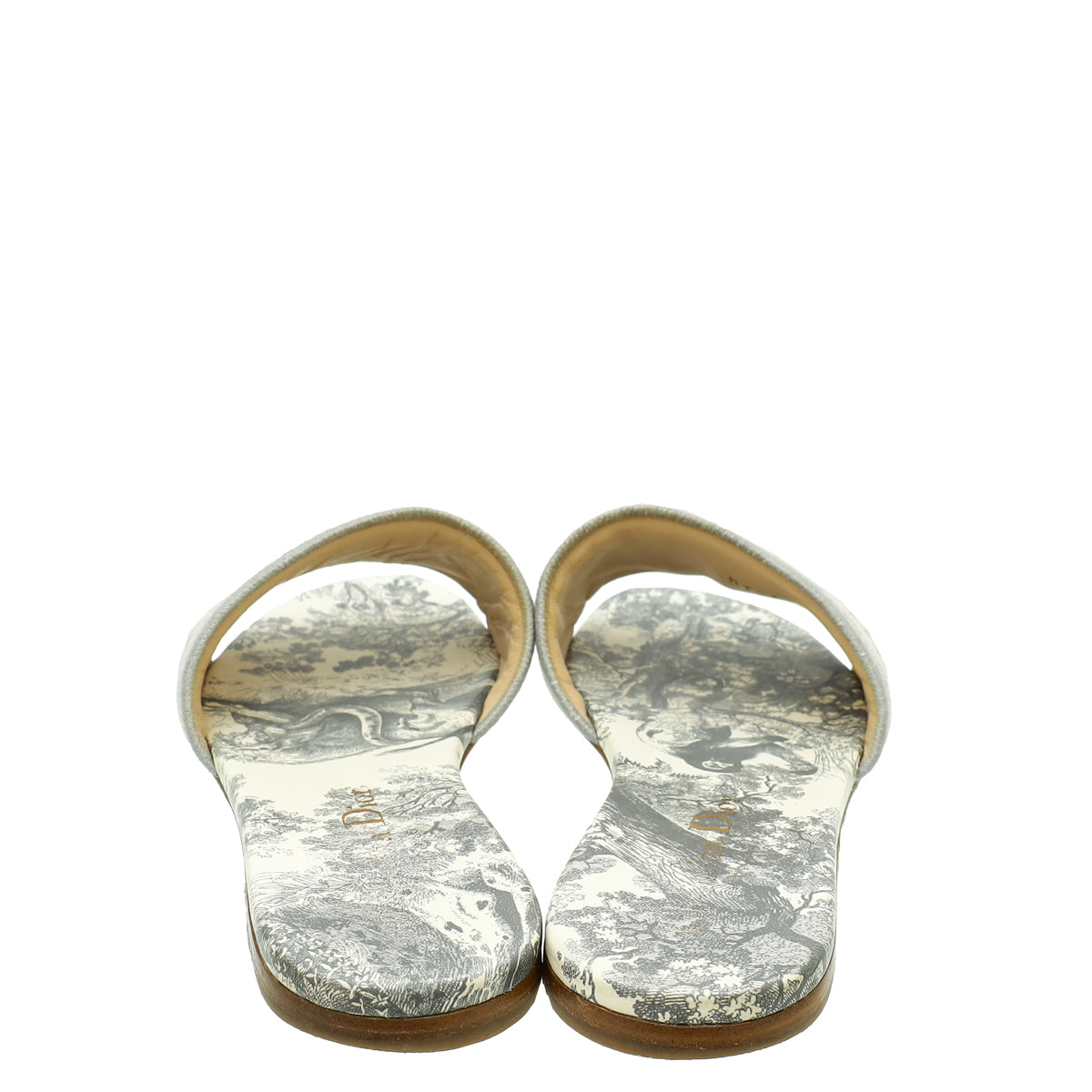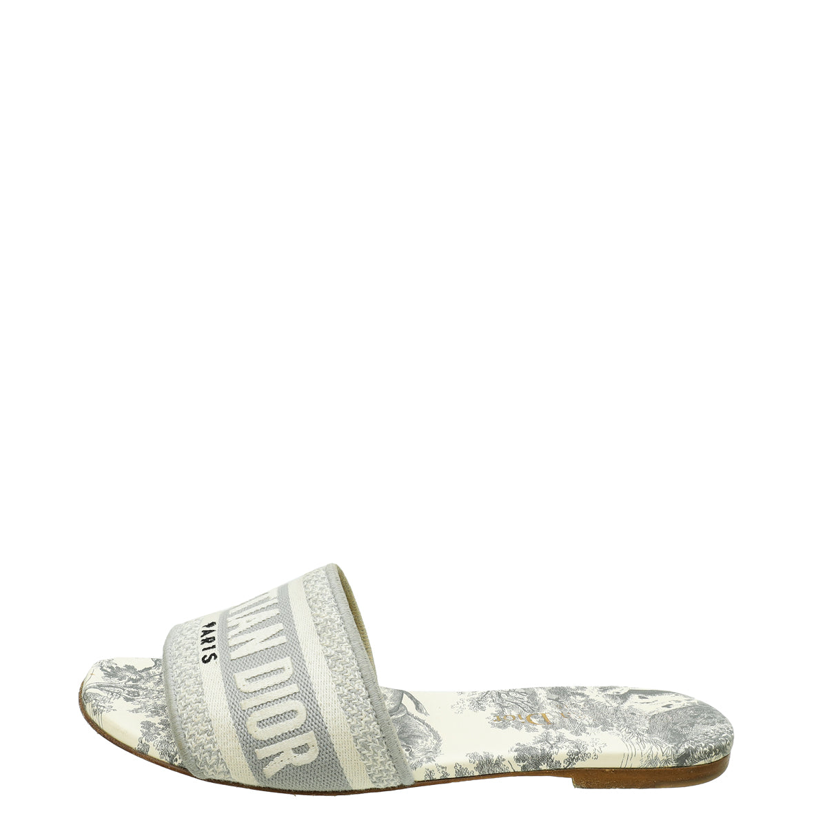 Christian Dior Light Grey Dway Toile De Jouy Flat Mules 35