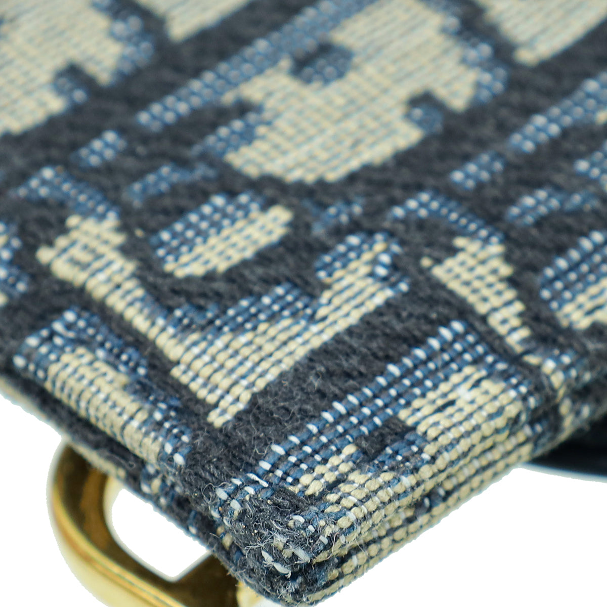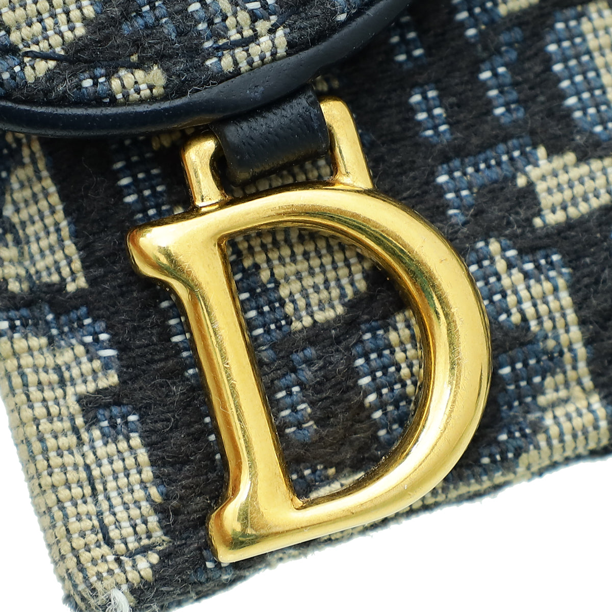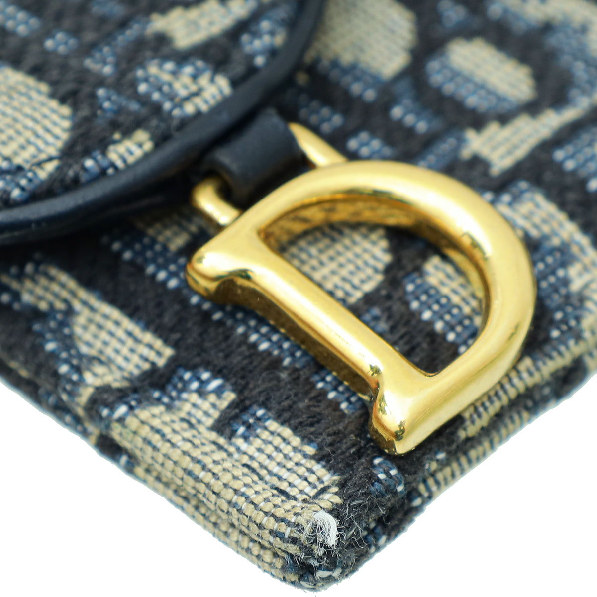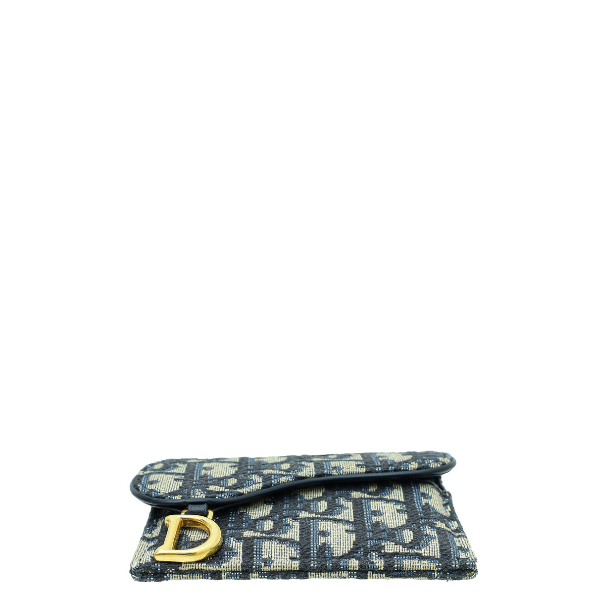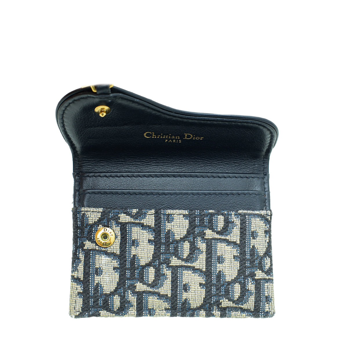 Christian Dior Navy Blue Oblique Saddle Flap Card Holder