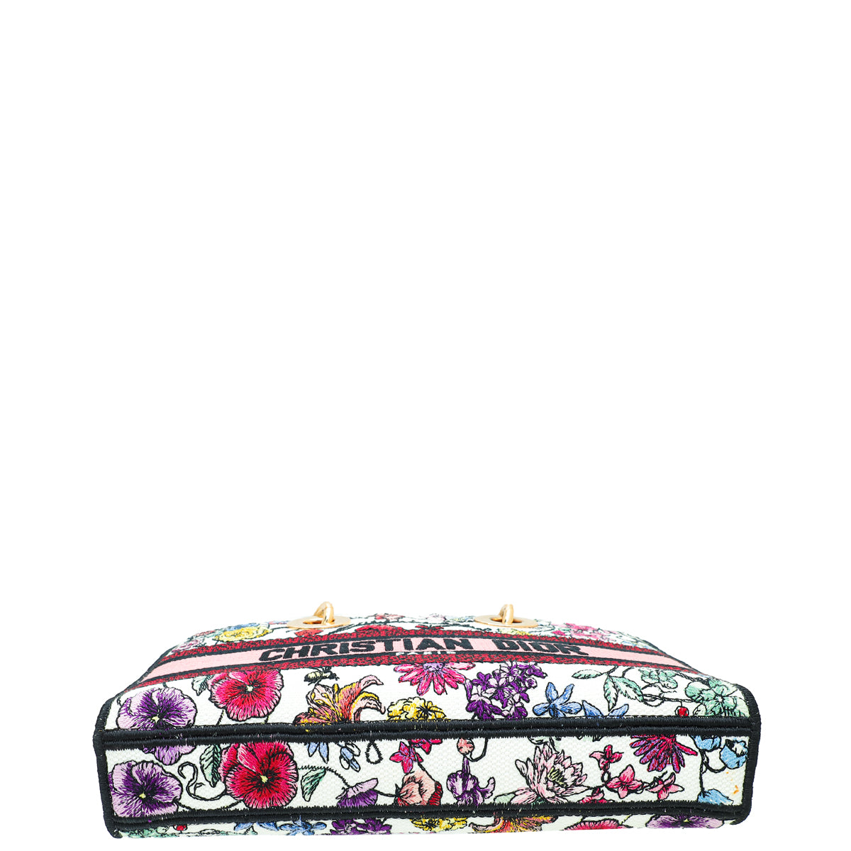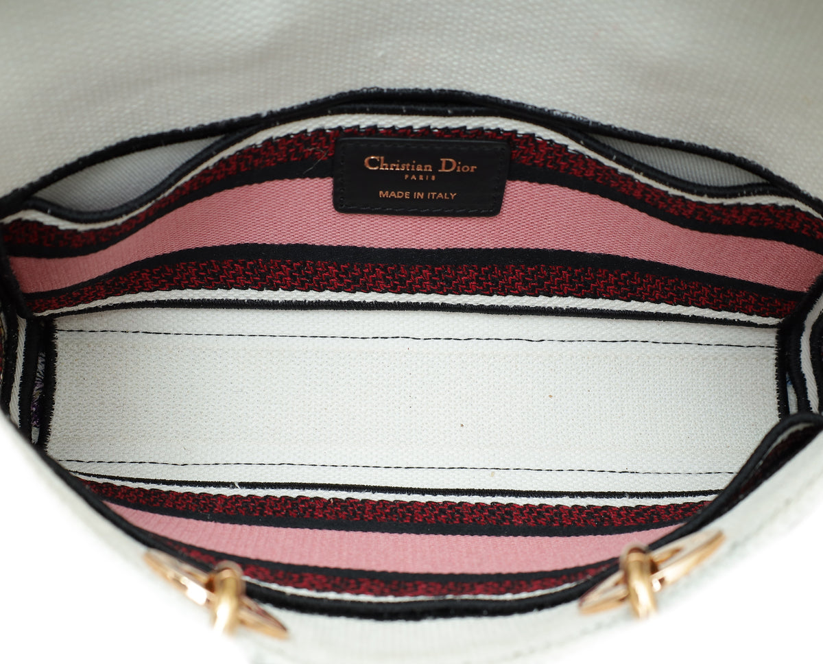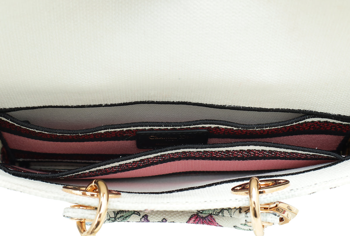 Christian Dior White Multicolor Lady D-Joy Embroidered Medium Bag