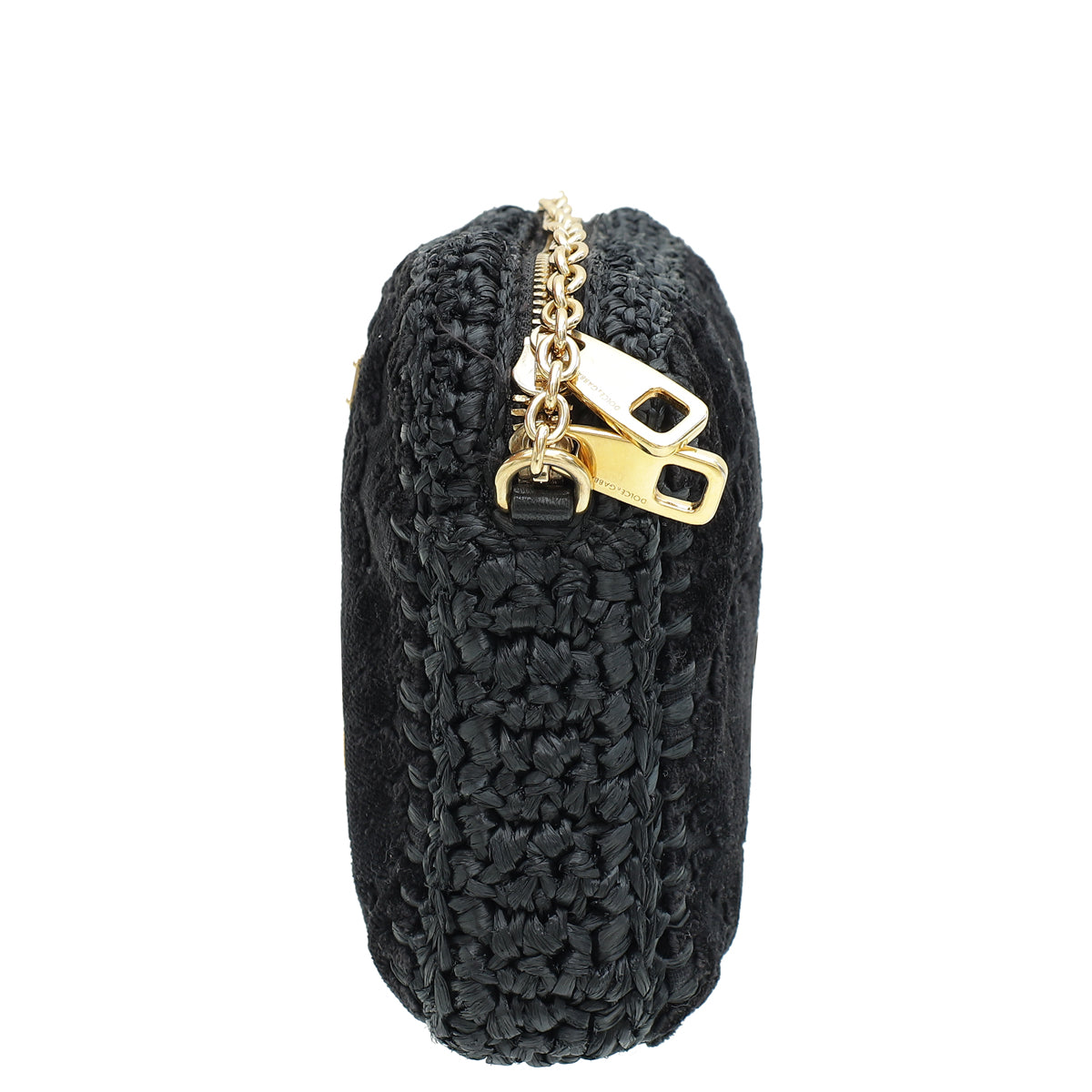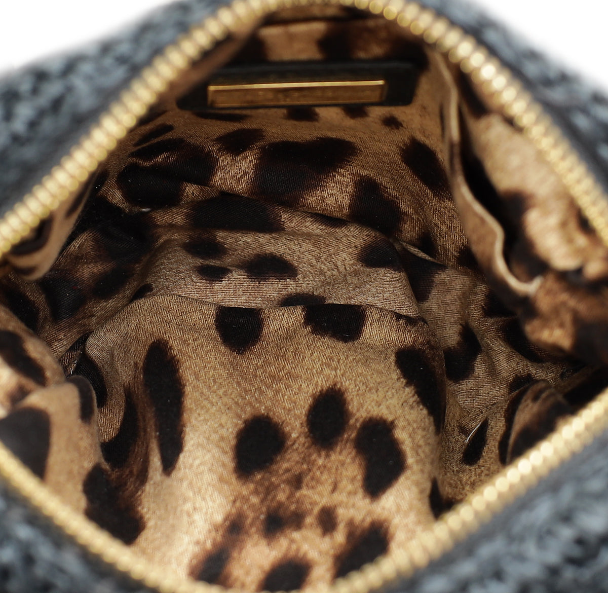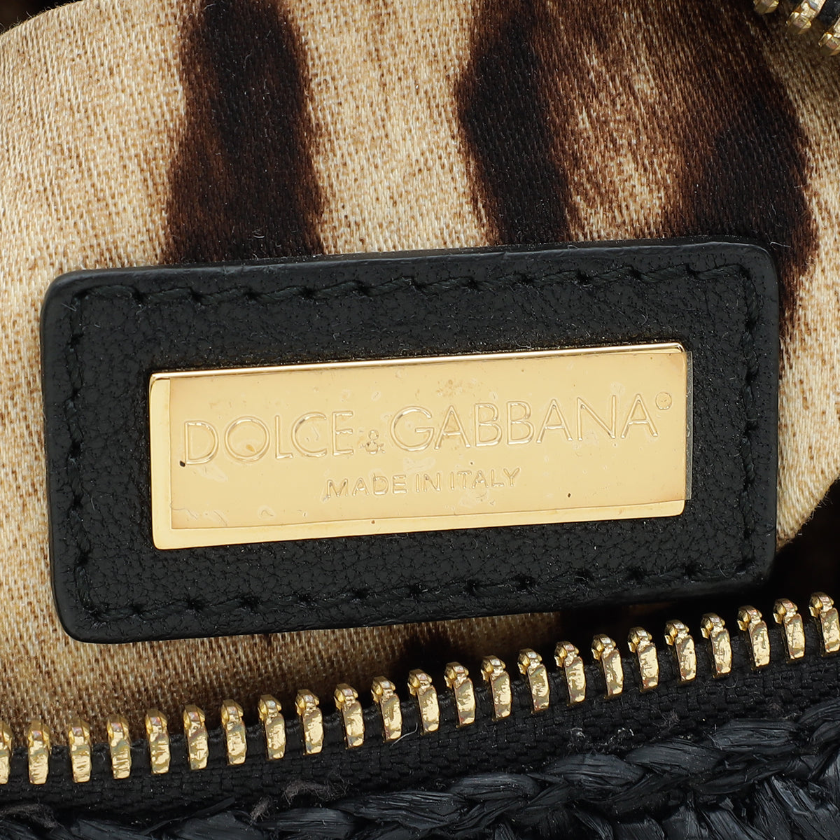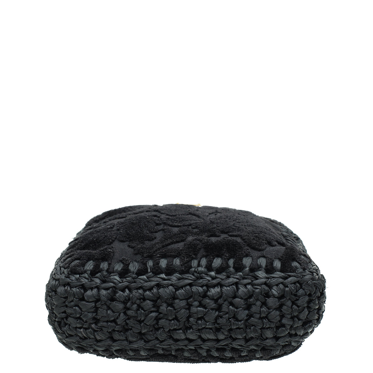 Dolce & Gabbana Black Velvet Fabric and Raffia Shoulder Bag