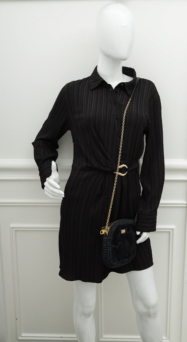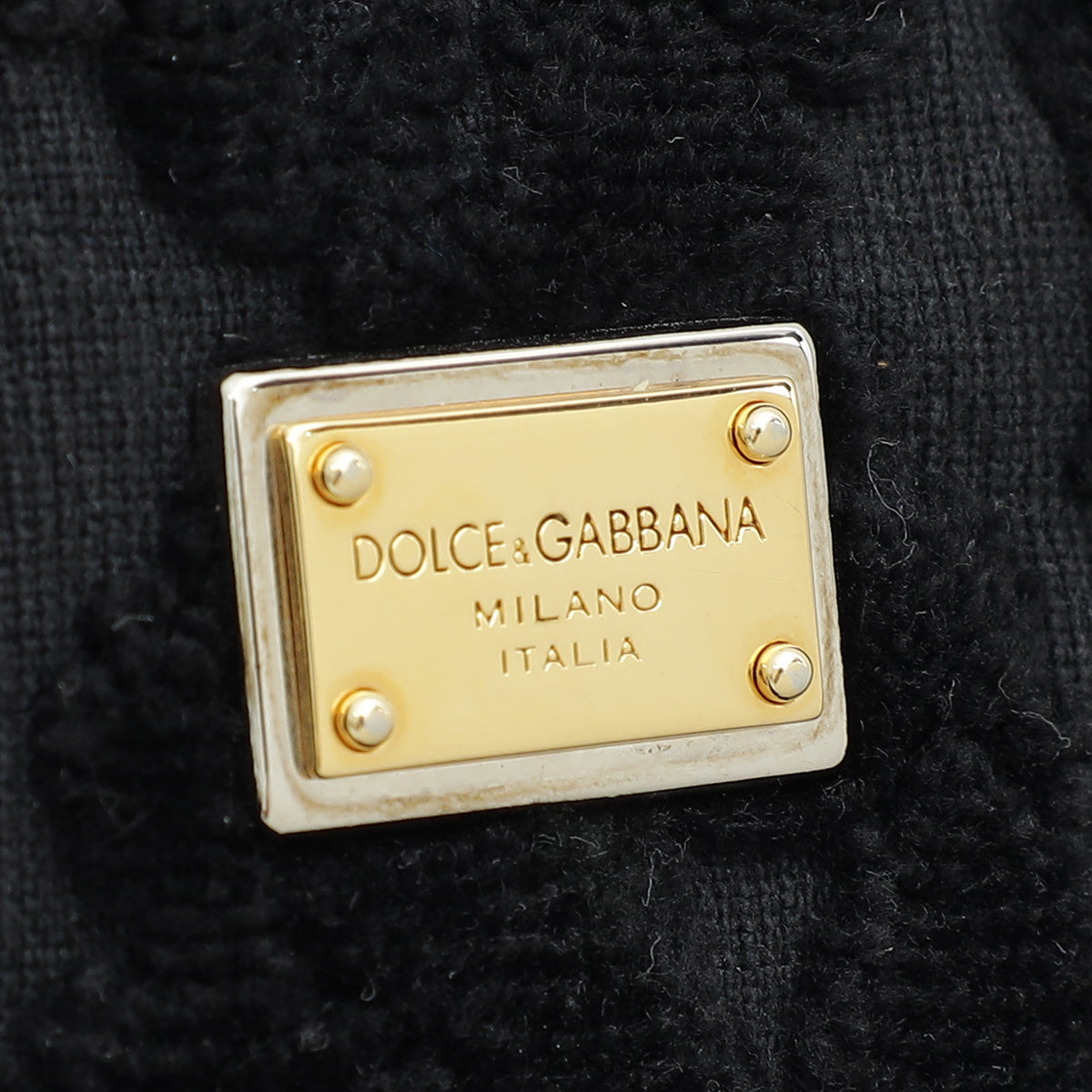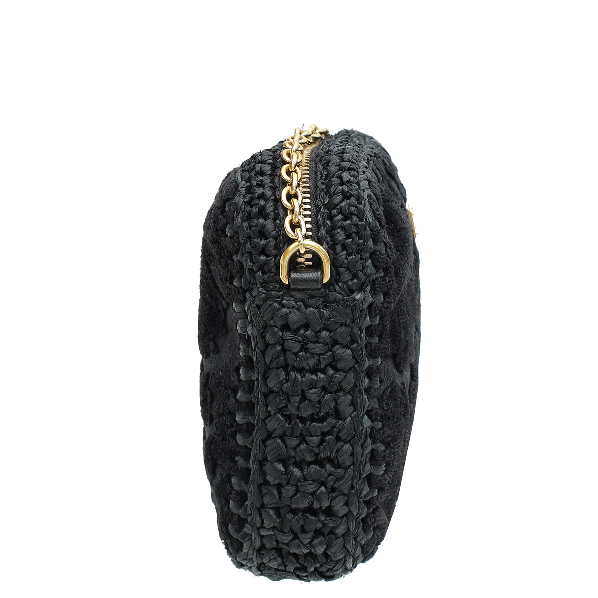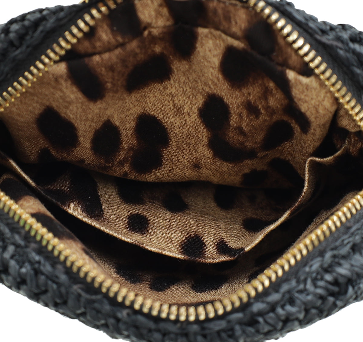 Dolce & Gabbana Black Velvet Fabric and Raffia Shoulder Bag