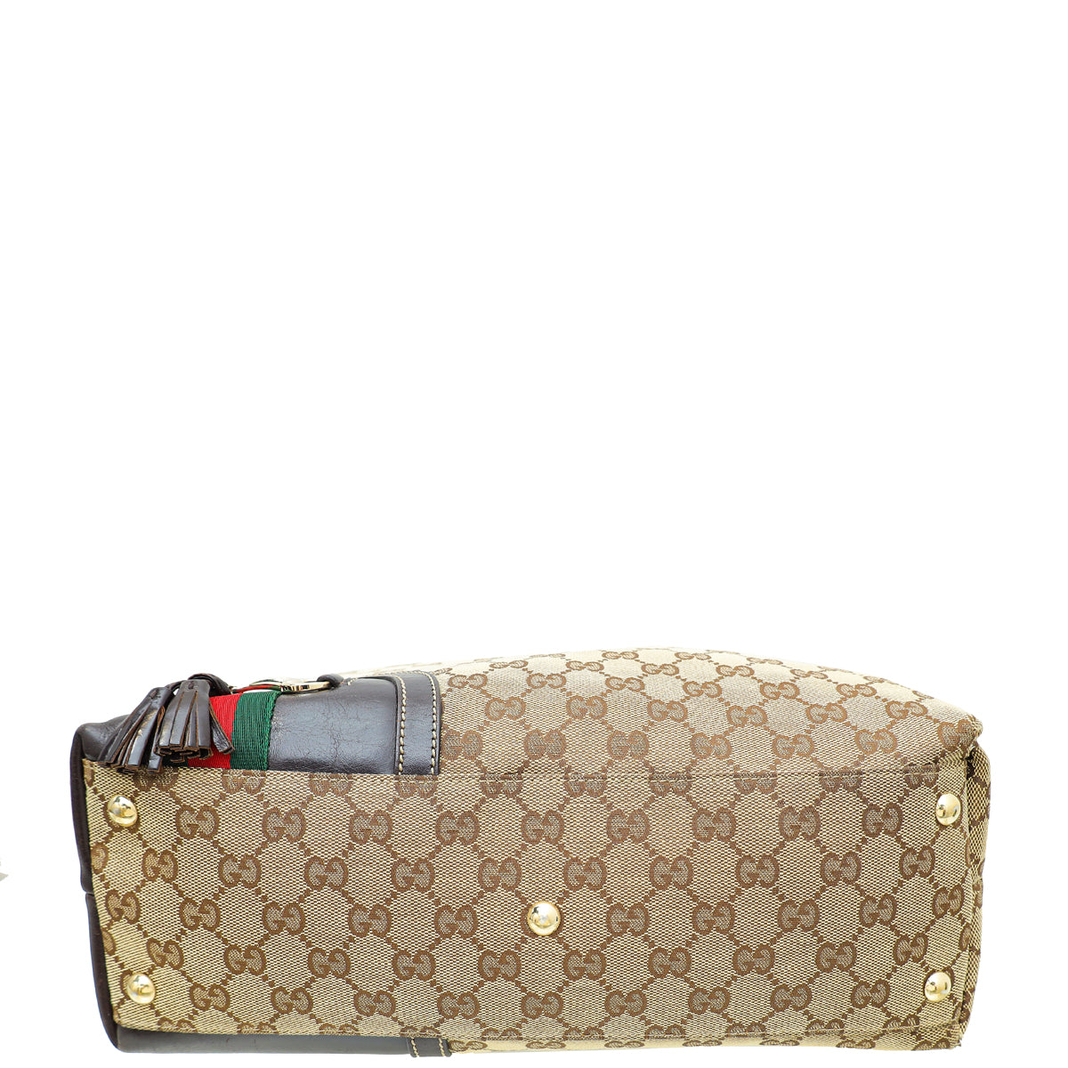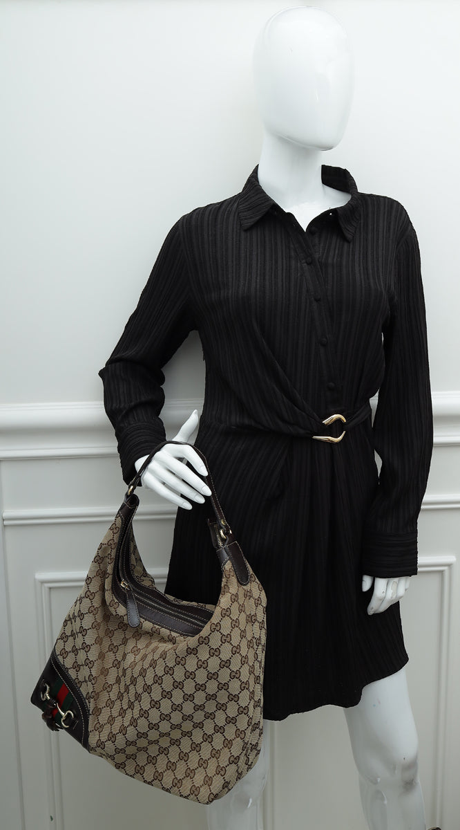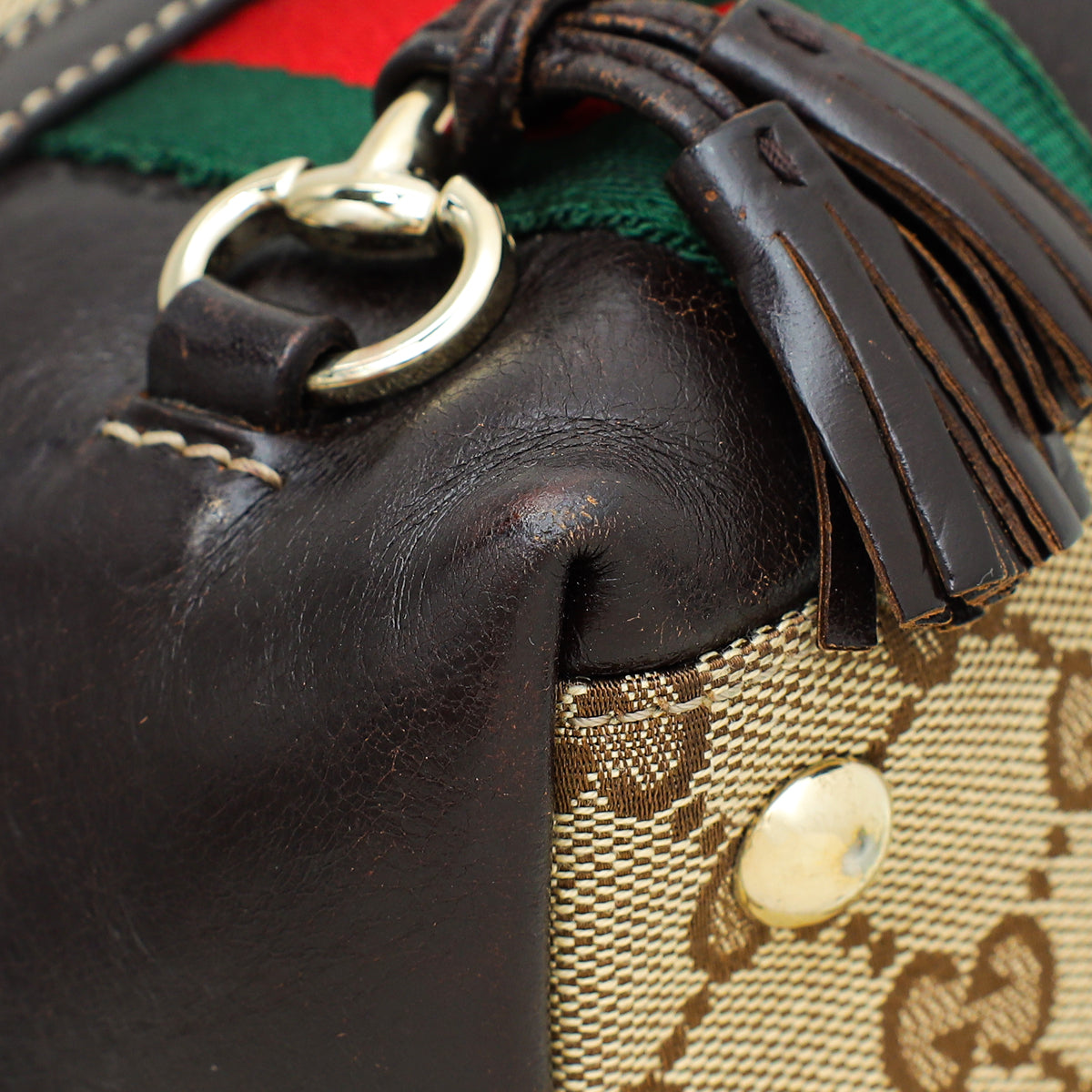 Gucci Bicolor GG Canvas Web Horsebit Tassel Hobo Medium Bag
