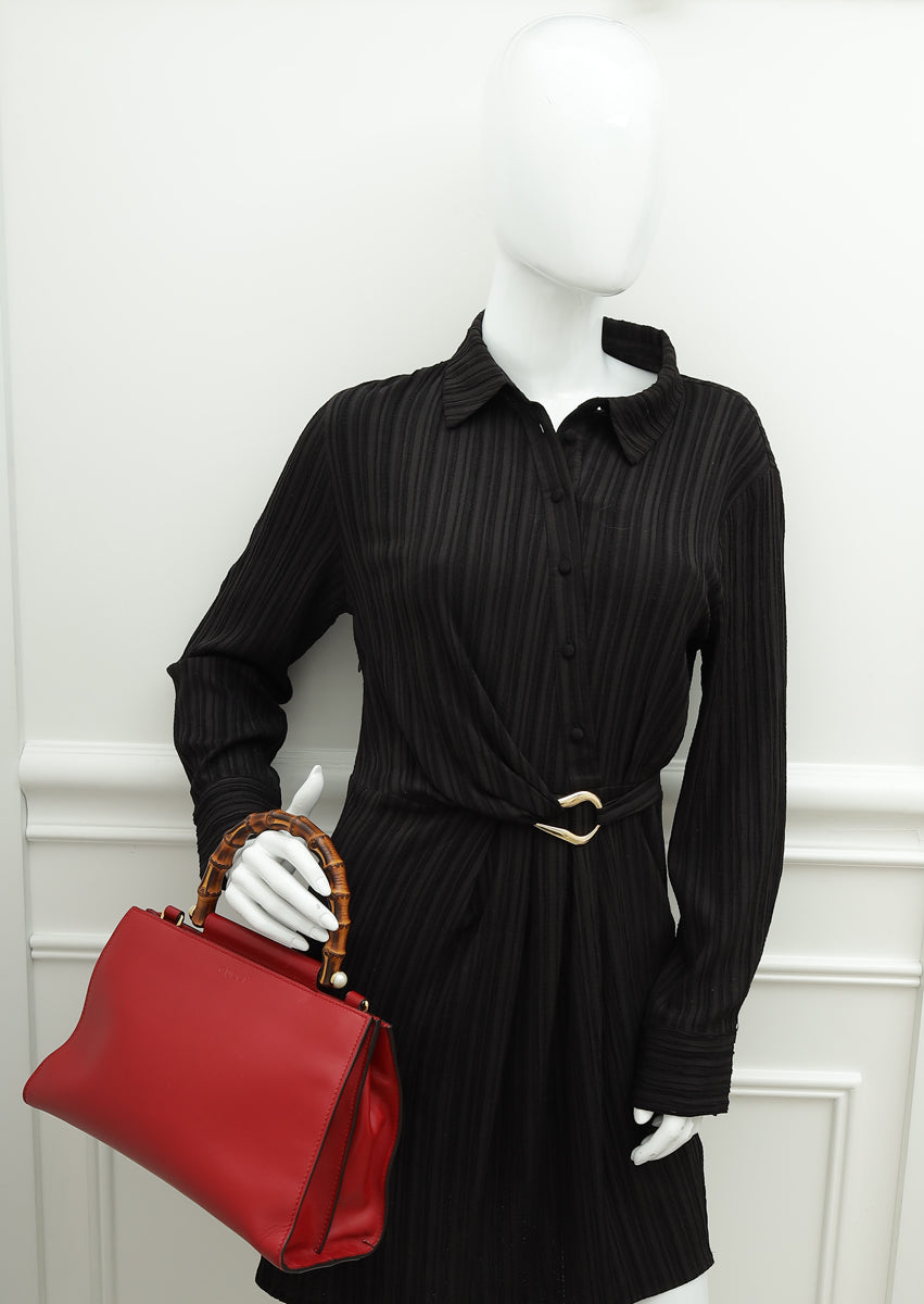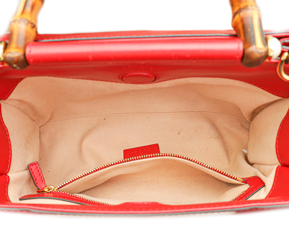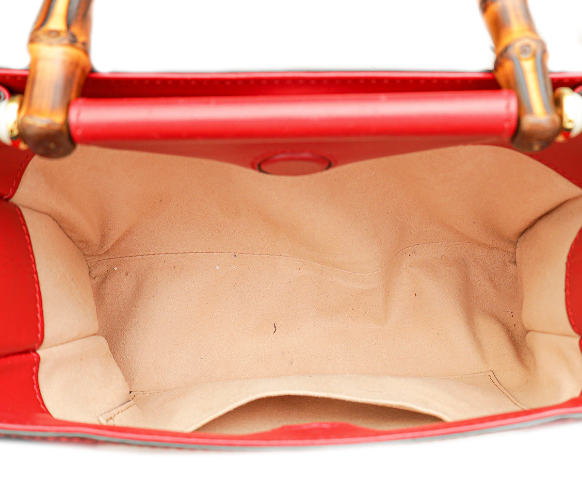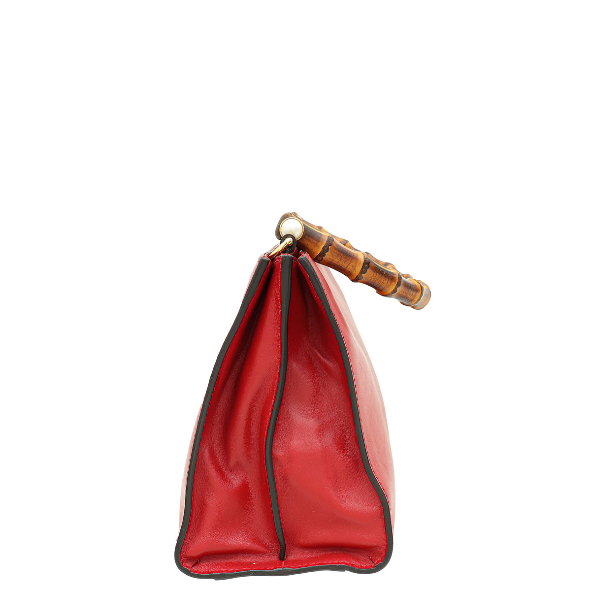 Gucci Red Nymphaea Bamboo Shoulder Bag
