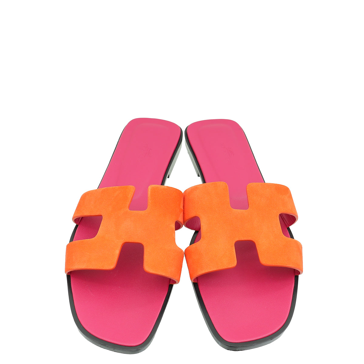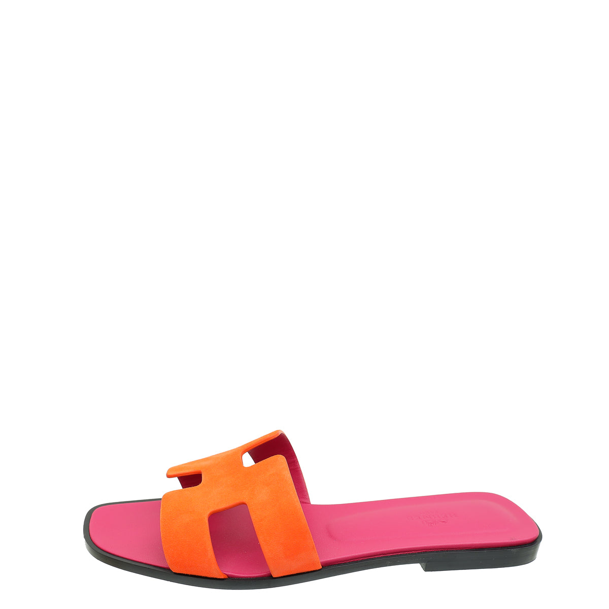 Material: Orange Synthetique/H Suede and Rose Chapas Leather with Iconic "H" Cut Out